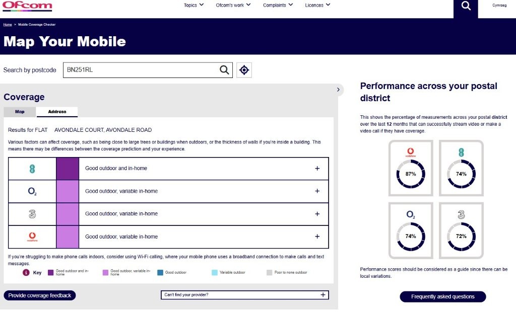 Our mobile and broadband searches were carried out via Ofcom. You can do this directly by visiting Mobile and Broadband checker by Ofcom