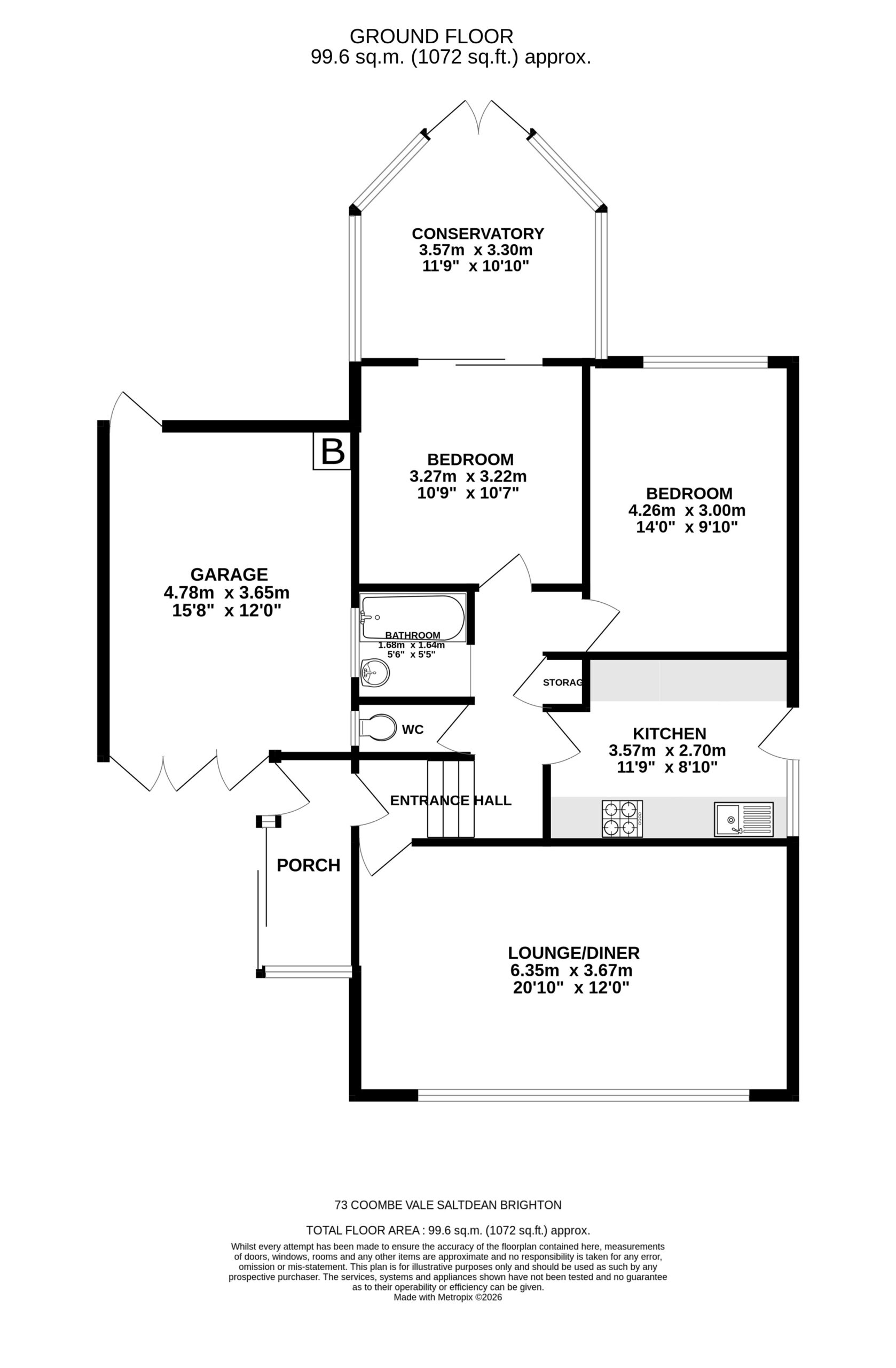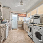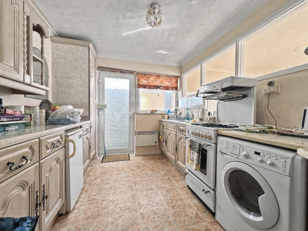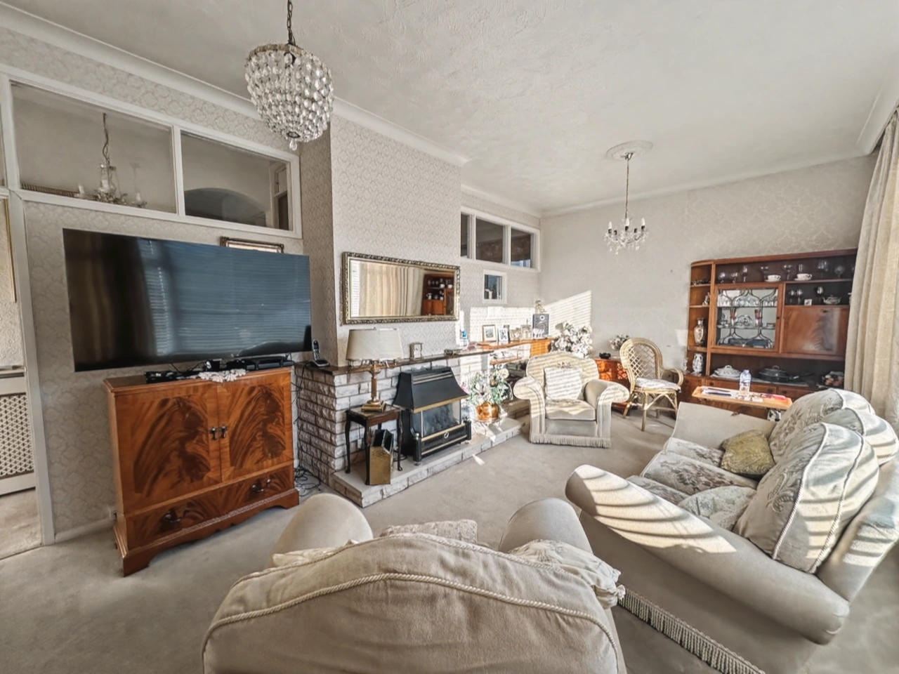 Upon entering, you are greeted by a spacious entrance hall leading into a generously proportioned lounge, where large windows frame nice views towards the Telscombe Tye and across Saltdean. The kitchen is well laid out, offering ample storage and workspace with space for appliances and a range of matching wall cupboards. The kitchen would now benefit from some updating. The bungalow features two bedrooms, both of which are well-sized and Bedroom 2 has a spacious conservatory allowing access to the rear garden. There is a Bathroom and separate WC which again would benefit from updating. Throughout the property, there is clear potential for further modernisation, allowing new owners the opportunity to personalise the interior and add space, as has been done to other similar properties around it. Additional features include a private garage and off-street parking for two cars, ensuring ample space for vehicles and storage.