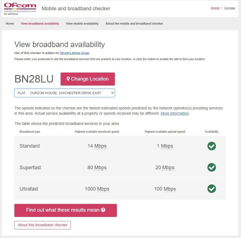 Our mobile and broadband searches were carried out via Ofcom. You can do this directly by visiting Mobile and Broadband checker by Ofcom