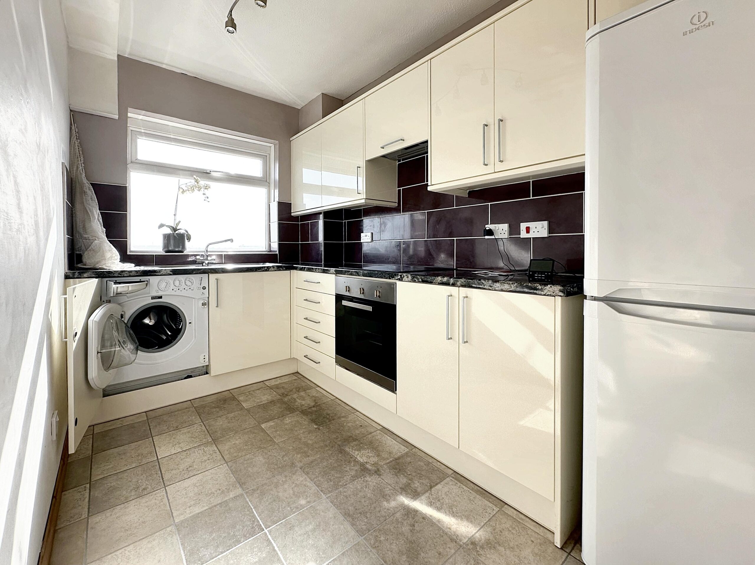 Upon entering the flat there is an entrance hall with airing cupboard. A particular feature of the flat is the large lounge with sliding patio doors to the sun balcony with views to the sea. The Kitchen is fitted with a range of modern cream coloured units having a range of case cupboards and drawers with matching wall cupboards. The kitchen also has an integrated oven and hob and washing machine.