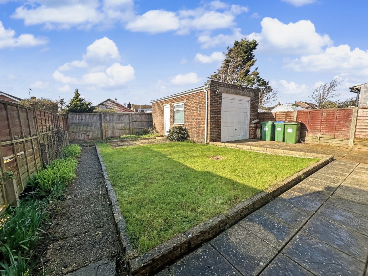 The property also benefits from a large detached cavity brick garage with its own power and light. The front garden is neatly laid to lawn with a driveway running down the side of the property allowing access to a level and well maintained west facing rear garden. Being west, the garden gets the most of the summer sun until late in the evening.