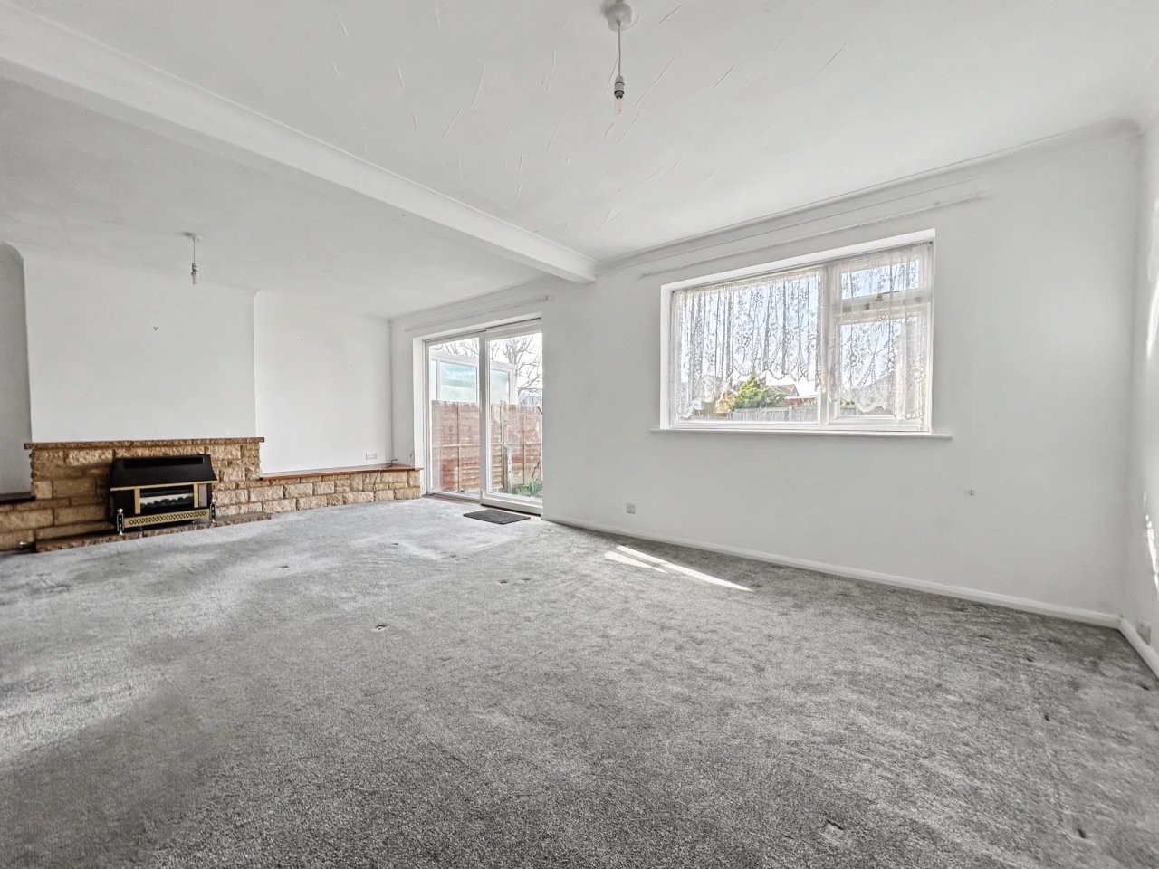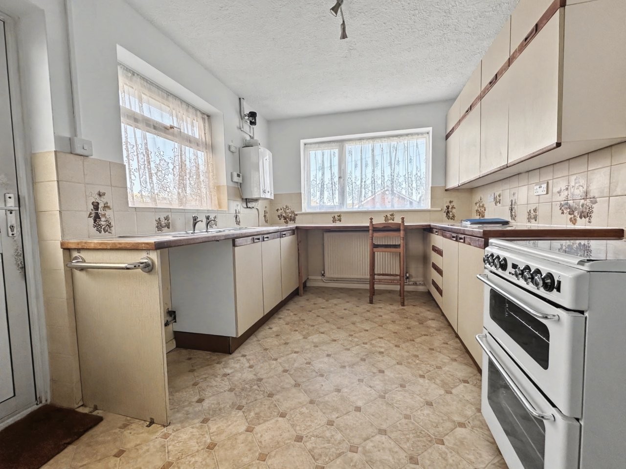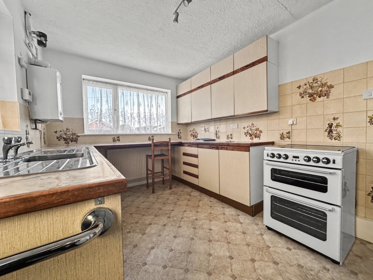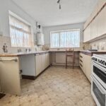 Stepping inside, you are greeted by an entrance porch and a generous hallway leading to a large lounge and dining room that spans the rear of the property, thoughtfully designed to create a welcoming atmosphere for both relaxing and entertaining. This versatile living space is bathed in natural light, with wide windows framing pleasant views and allowing direct access onto the west-facing garden. The adjacent kitchen is notably spacious, offering ample storage and space for a breakfast table, and while it would benefit from modernisation, it provides a good base for improvement. The accommodation further comprises three well-proportioned double bedrooms, one on the ground floor with built in wardrobes and two further bedrooms on the first floor with loft/eaves storage. The main bathroom is conveniently positioned and complemented by a separate WC.