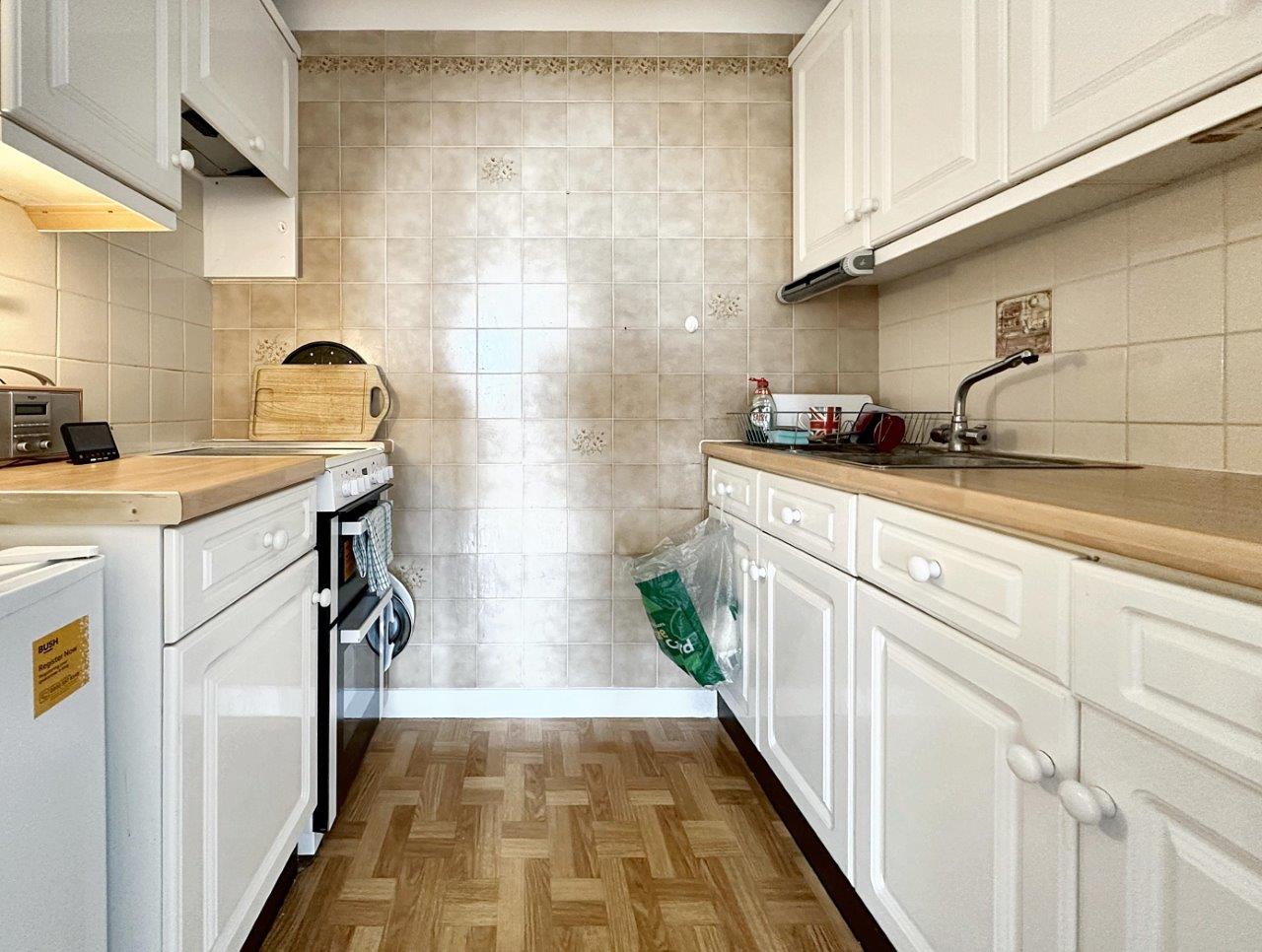 Upon entering the flat, you are greeted by an entrance hall with a built in cupboard. The south facing lounge is a good size and very bright with views towards the sea .An archway leads to a Kitchen with fitted base cupboards and drawers and space for appliances. The double bedroom features built-in wardrobes, offering ample storage solutions and maintaining a clutter-free environment and also has views to the sea. The bathroom is equipped with a low-level bath, wash basin and low level WC.