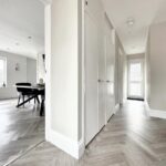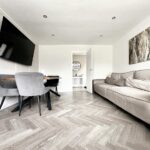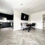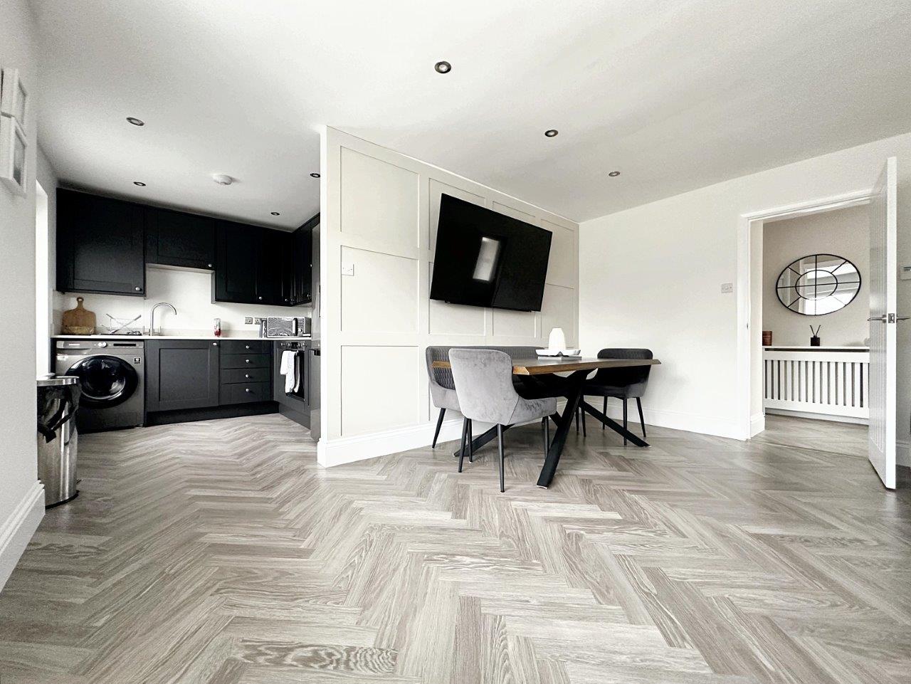 Spacious lounge/dining room opening into a modern kitchen