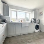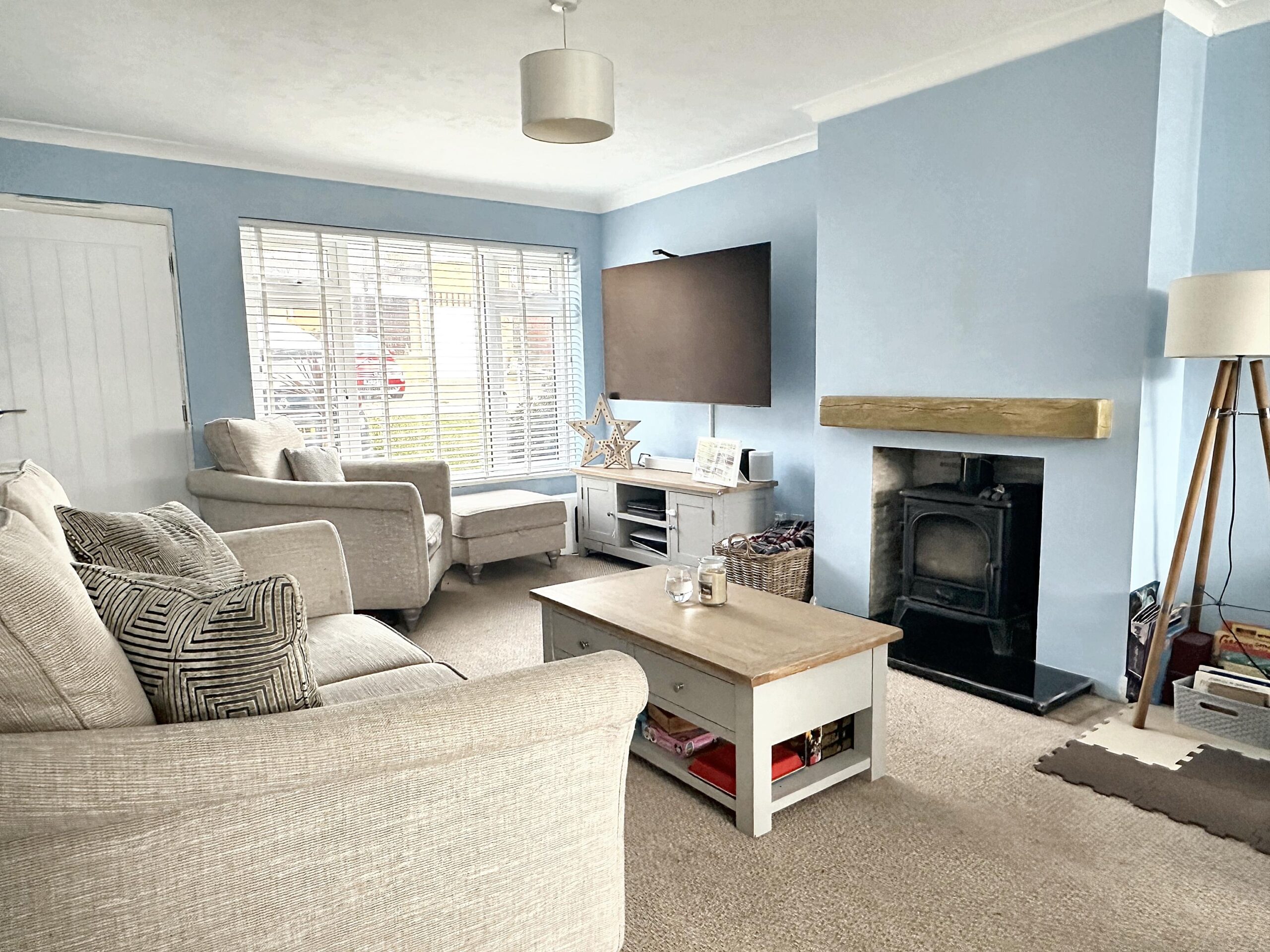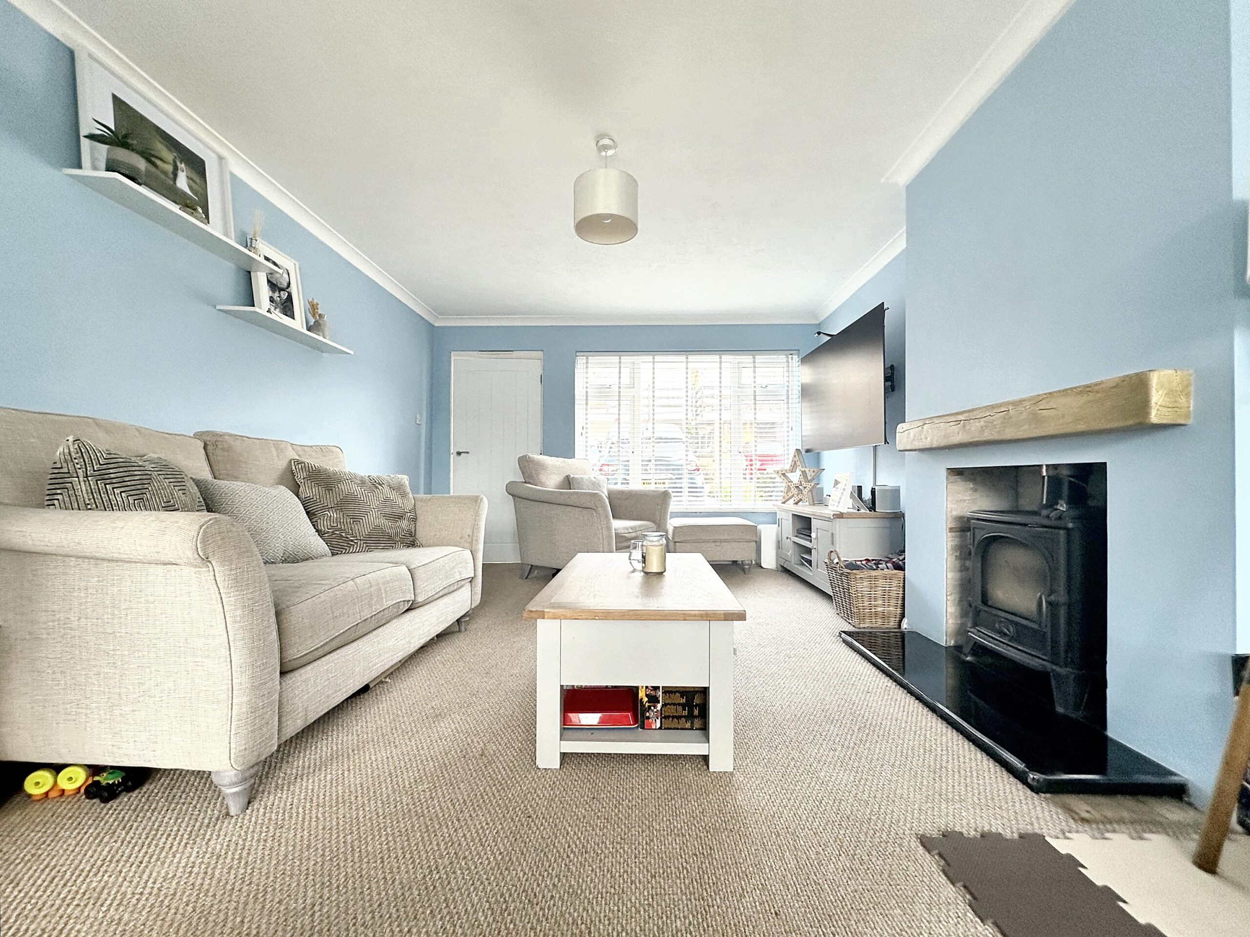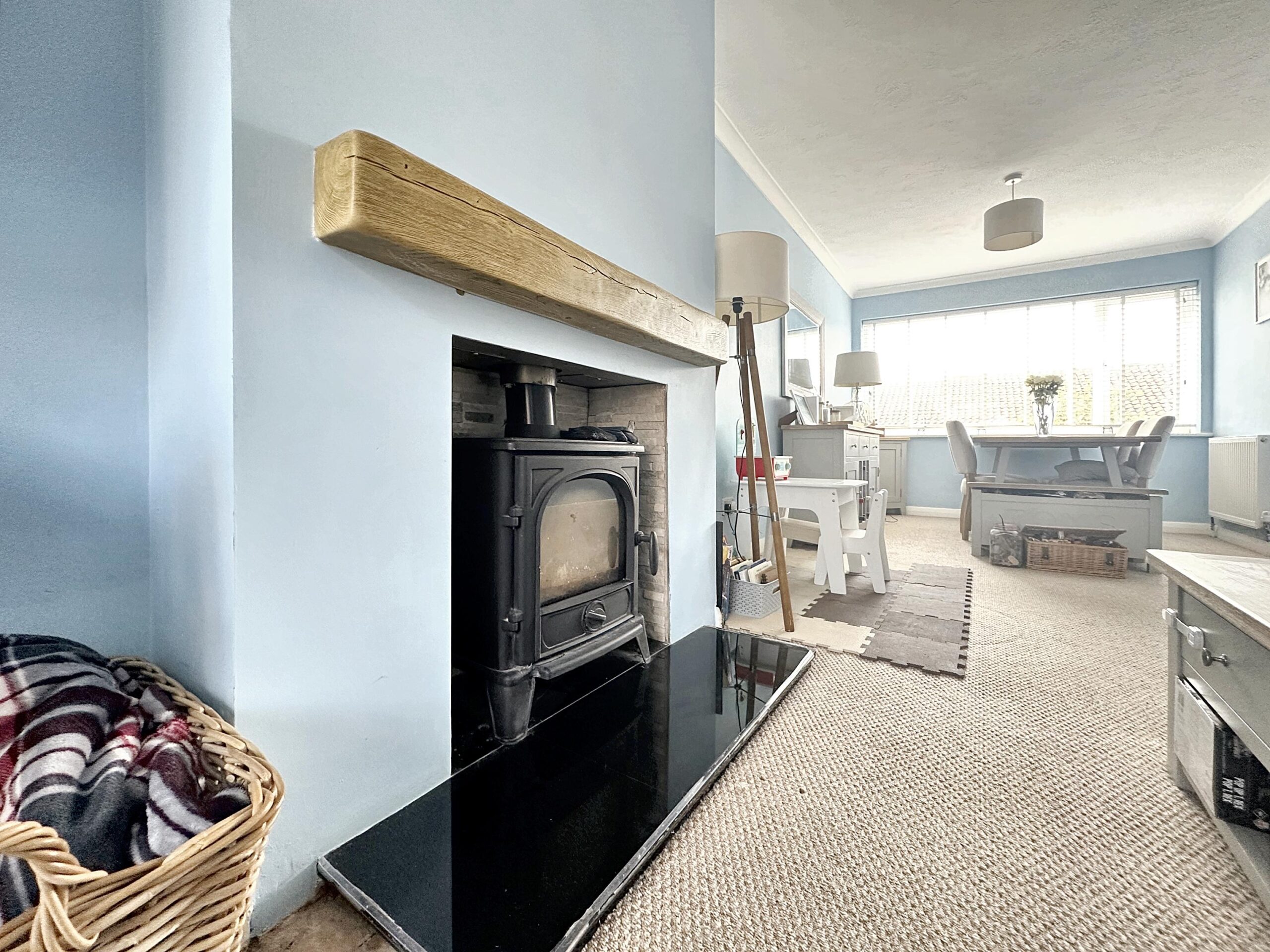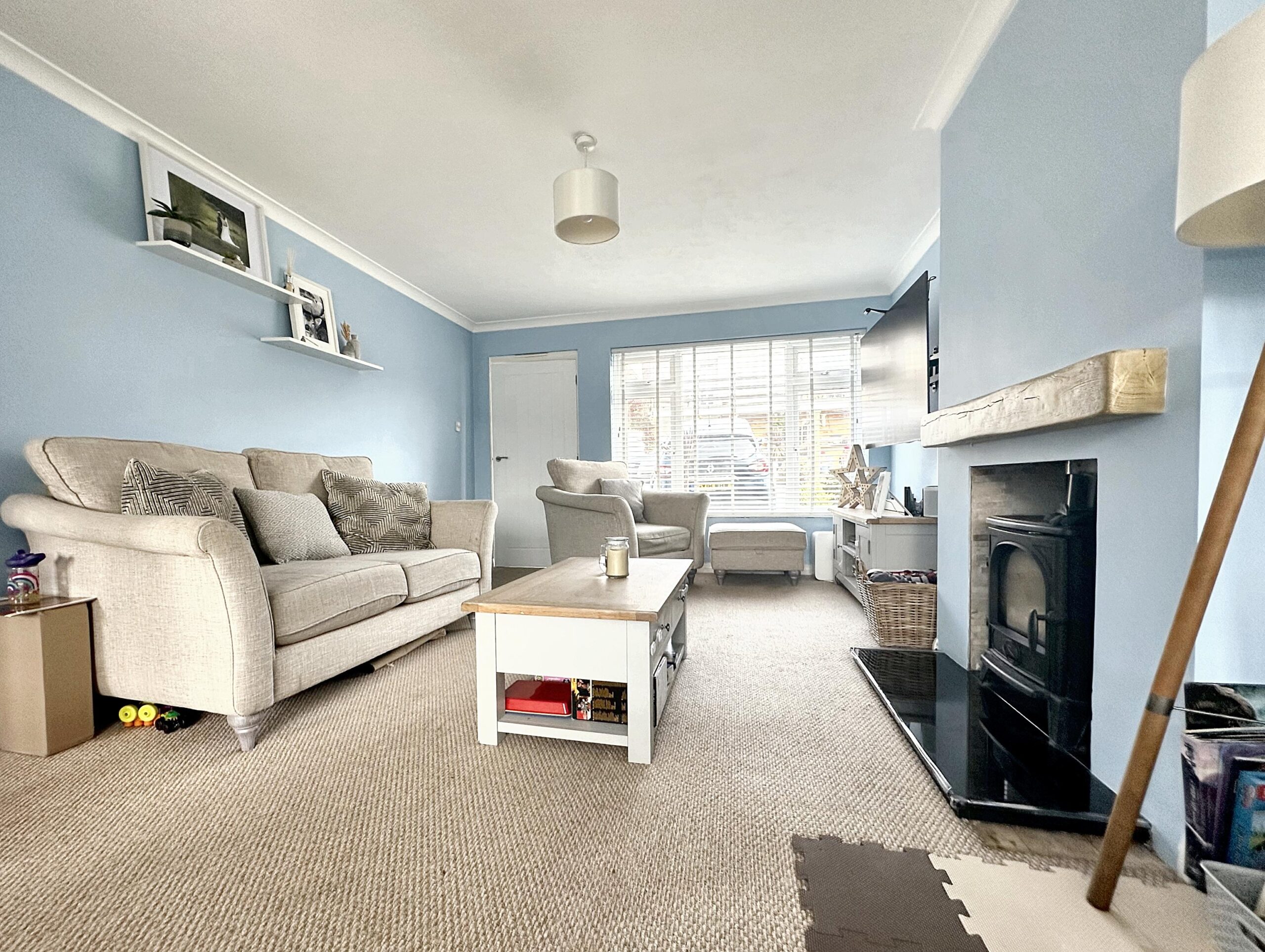 Stepping into the property, the focal point is the spacious through Lounge/Dining Room that overlooks the gardens, creating a delightful setting for relaxation or entertaining guests. The lounge has a sunny dual aspect and a fireplace with a log burner. The heart of the home, the refitted Kitchen, showcases a modern grey shaker style with attractive worktops and extra features such as curved ends and brass handles. A large window allows lots of light and views over the rear garden.