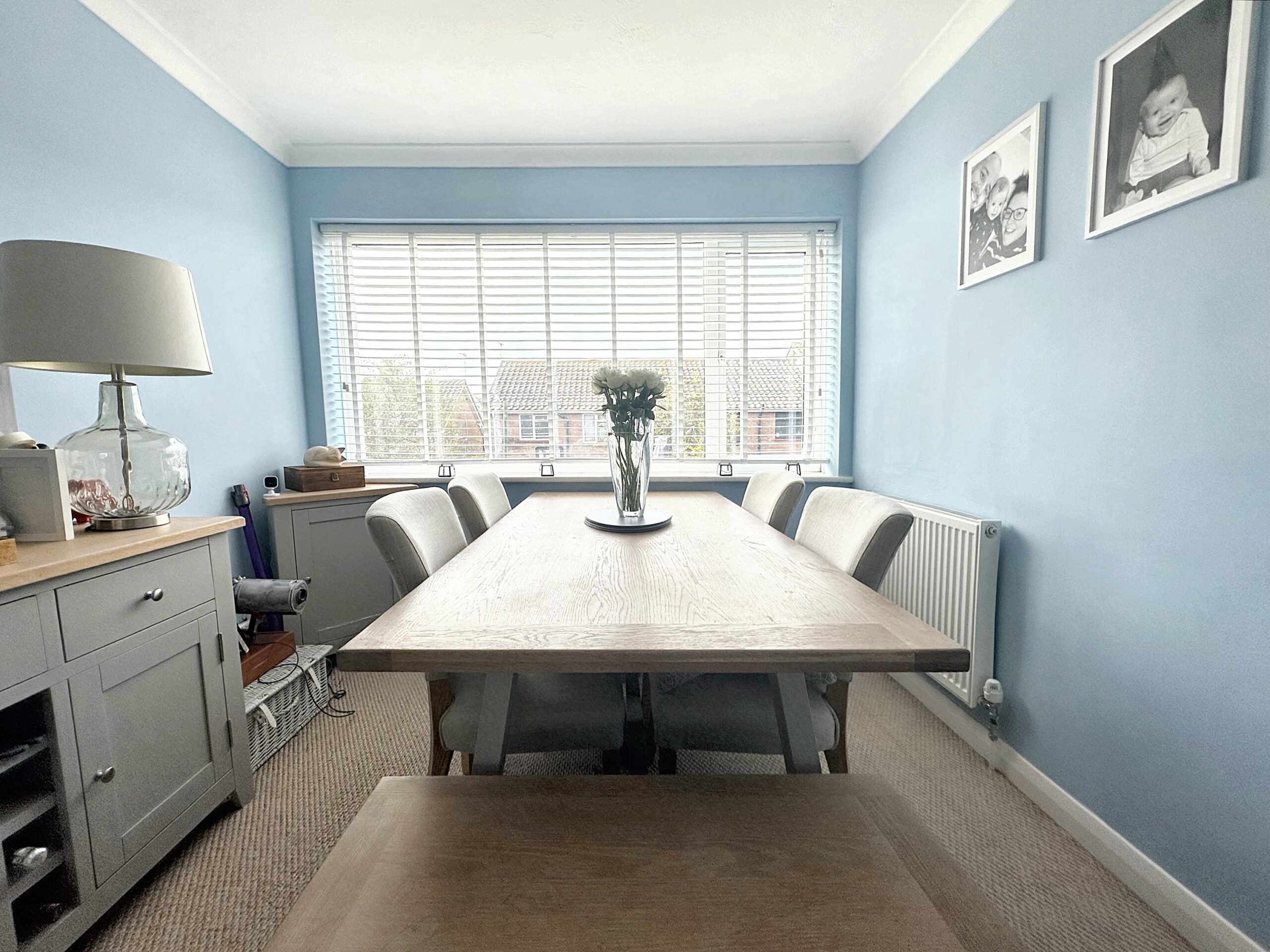 On the first floor are 3 double bedrooms and a nicely fitted bathroom. The landing has a hatch to the loft space. Beyond the interior, the house boasts a desirable west-facing rear garden. The property also includes an integral garage, perfect for storing vehicles or converting into additional living space, adding versatility to the home. A new driveway with parking for two vehicles, complete with an electric vehicle charging point, ensures residents have convenient parking options for their modern lifestyle needs.