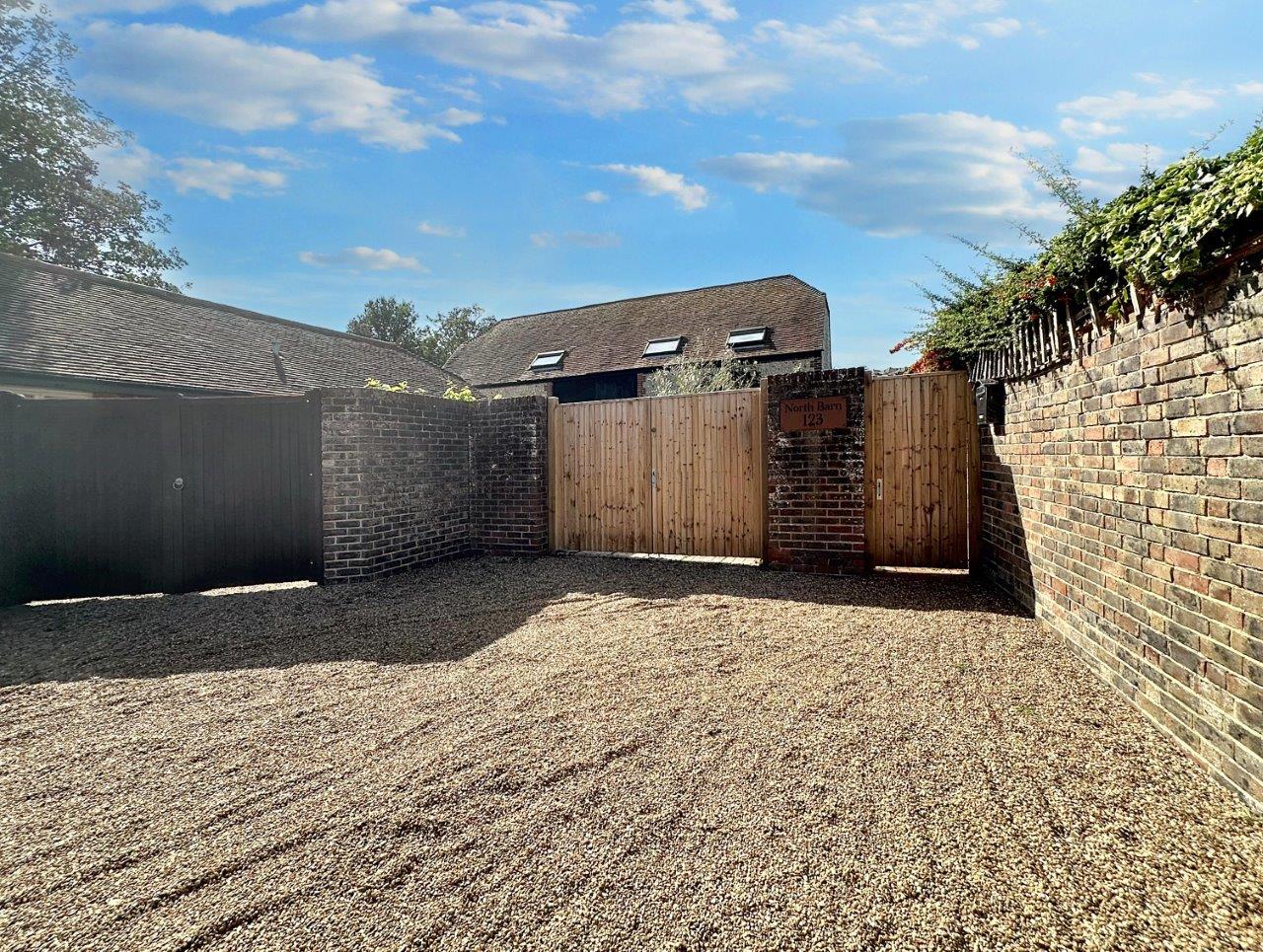 Set back from the road on a large plot the entrance over a brick paved area into a main parking area which is gravel and has access to the garage. New 6' double gates and a matching 6' pedestrian gate allow access to a private courtyard entrance with attractive brick paving with space for garden furniture and with established plants, shrubs and trees.