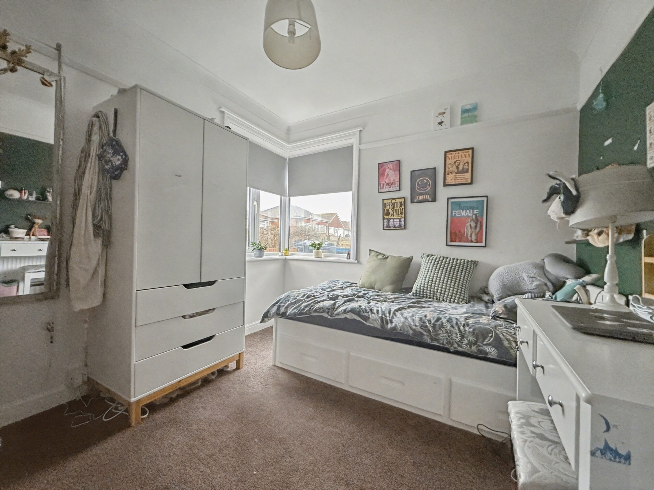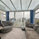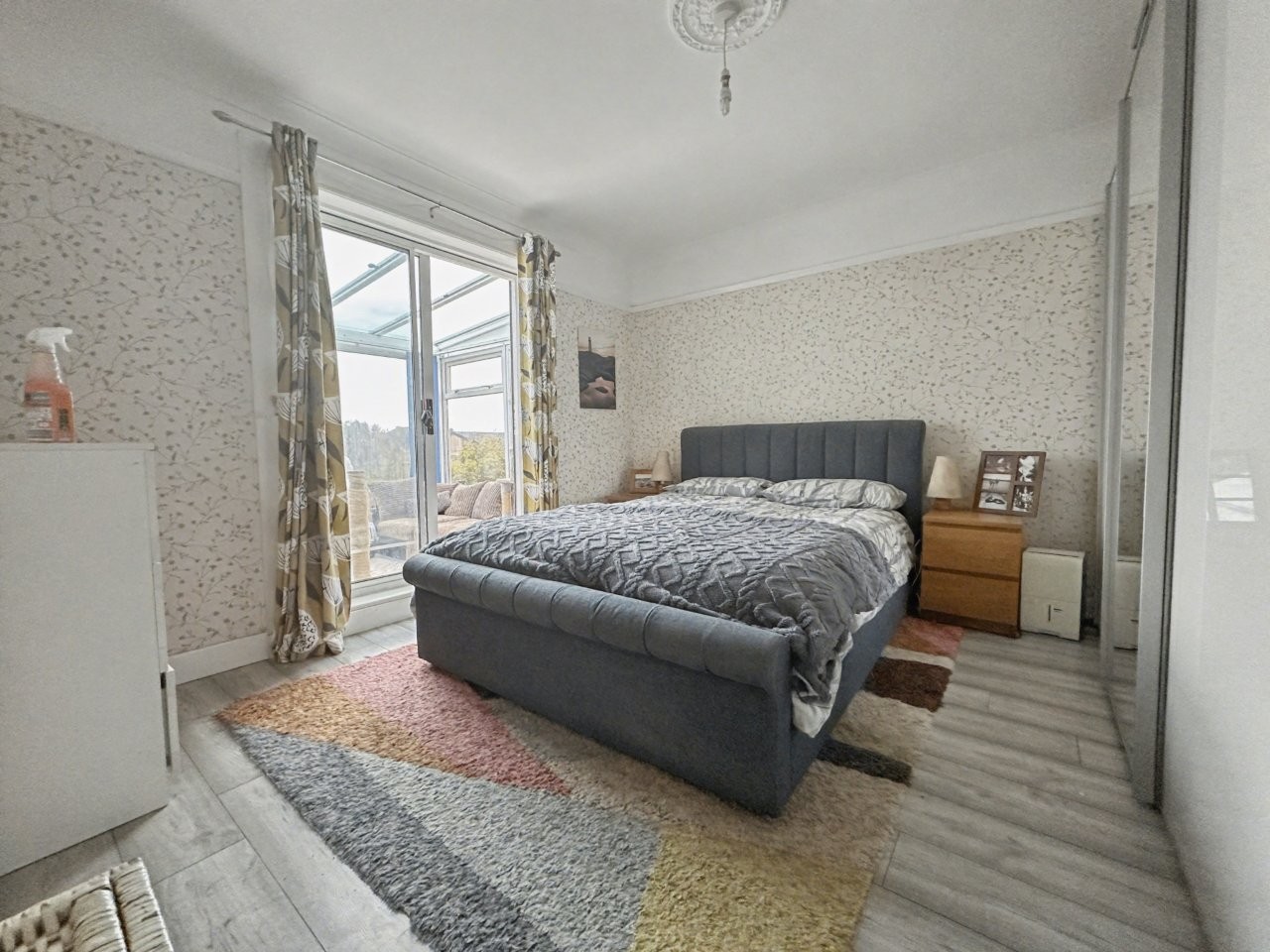 Both bedrooms are comfortable doubles, each offering generous floor space and versatile layout. The main bedroom has sliding patio doors that open into a conservatory which in turn opens out onto the garden. The bathroom is fitted with contemporary fixtures, including a full-sized bath with shower over, a washbasin with storage, and a low-level WC.