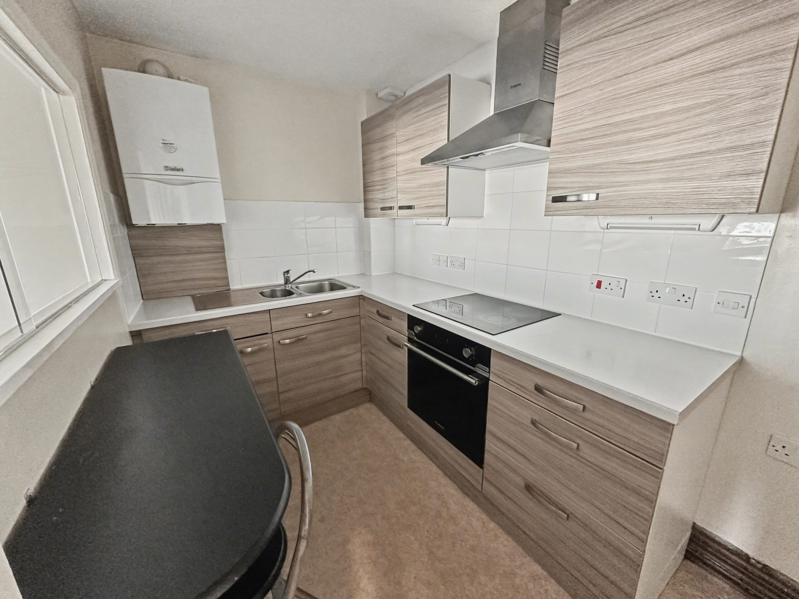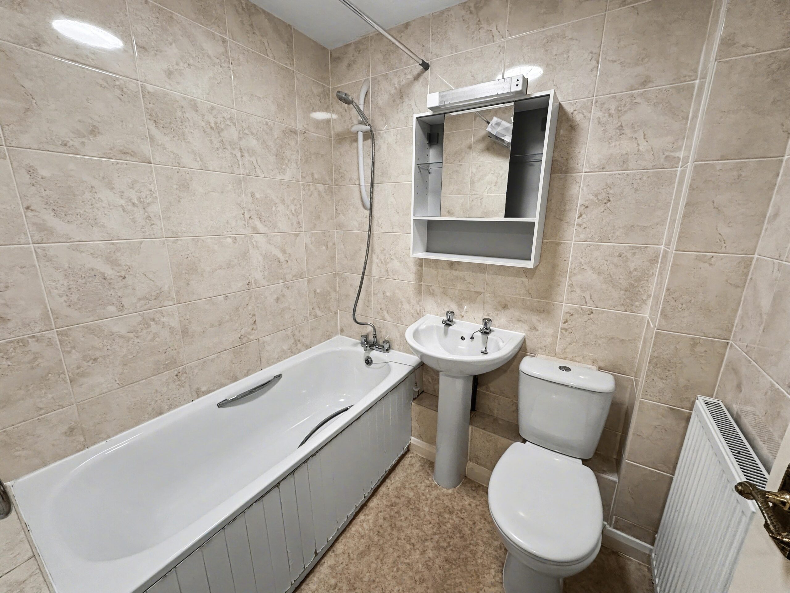 This attractive one-bedroom flat offers a harmonious blend of modern living and every-day convenience. Located above a selection of handy retail units - including a computer repair shop, greeting card store, barber shop, and post office - the property provides immediate access to local amenities. The flat is set on the first floor, benefiting from large windows, which help create a bright and airy environment throughout the home. Inside, the main living area is decorated neutrally, a versatile space that can be easily tailored to your personal style. The double bedroom is a good size with space for all necessary furniture. The bathroom boasts tiled walls, a bath-tub with shower over, combining style with functionality.