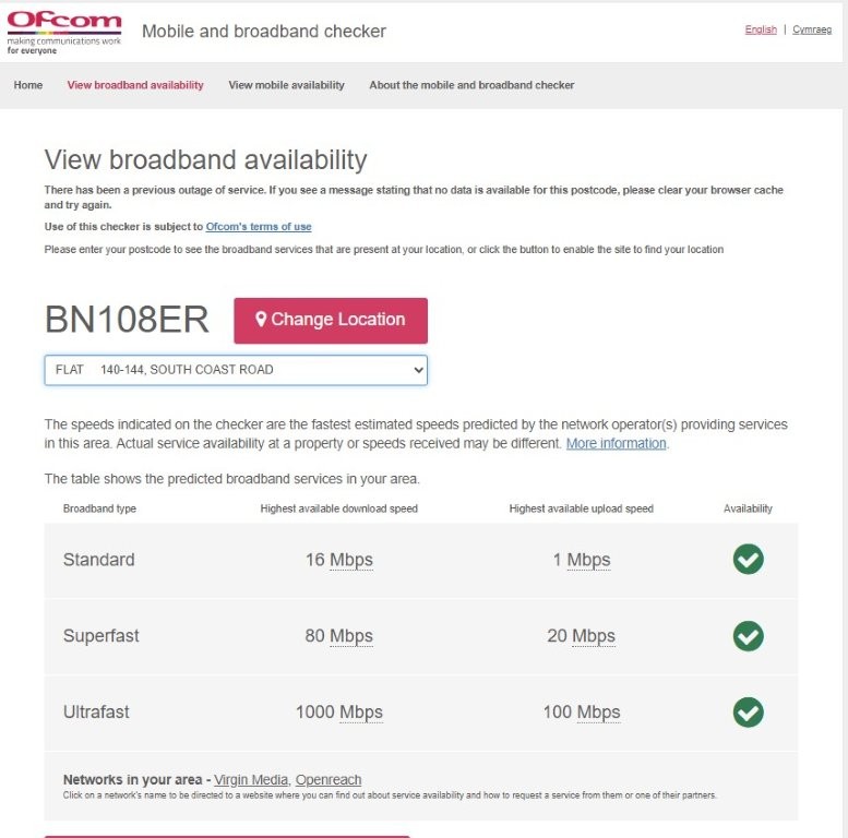 Our mobile and broadband searches were carried out via Ofcom. You can do this directly by visiting Mobile and Broadband checker by Ofcom