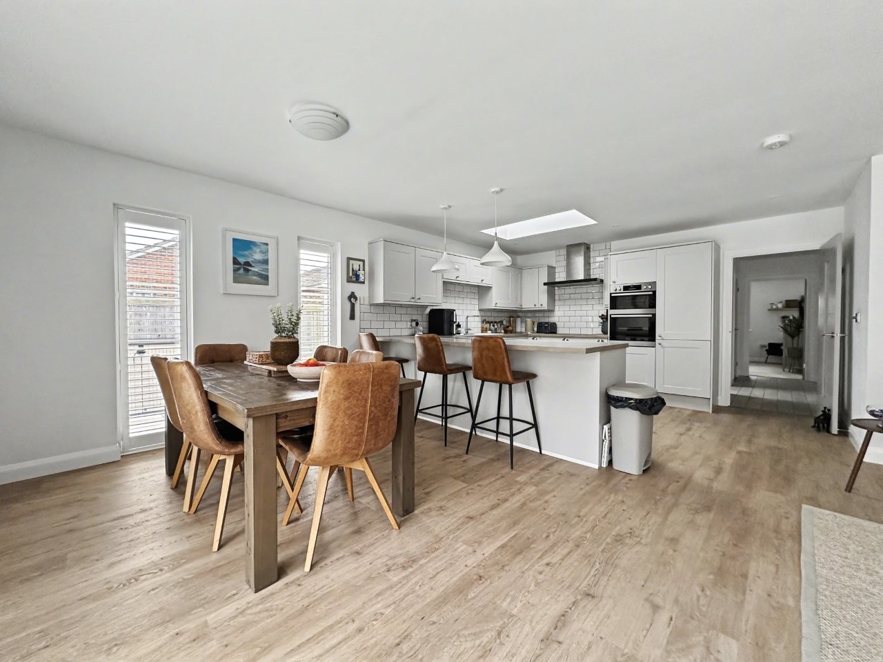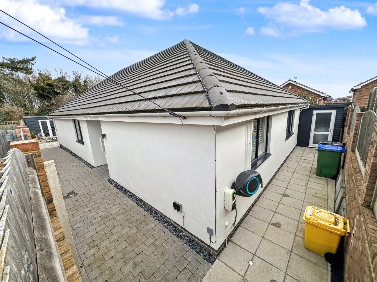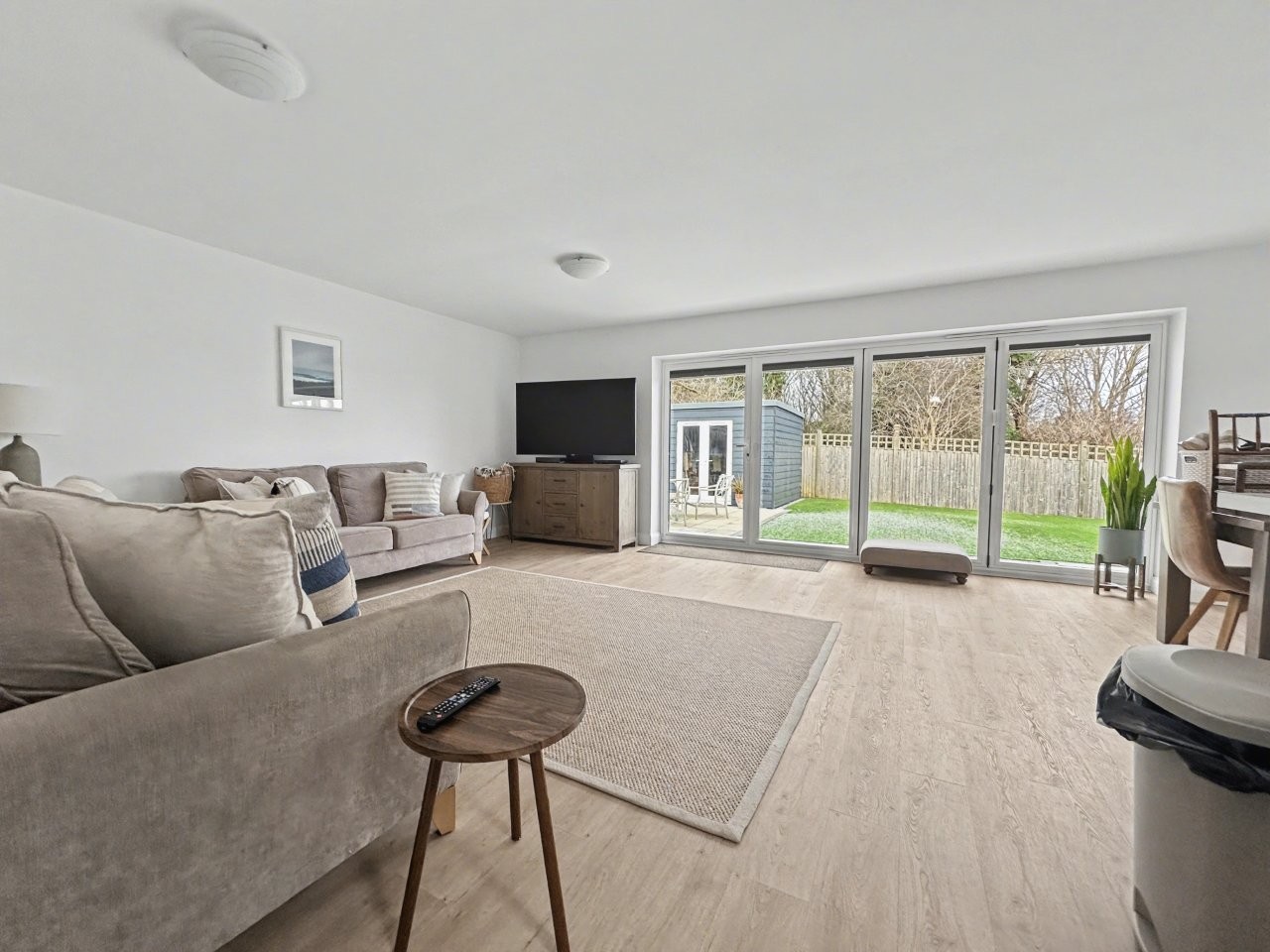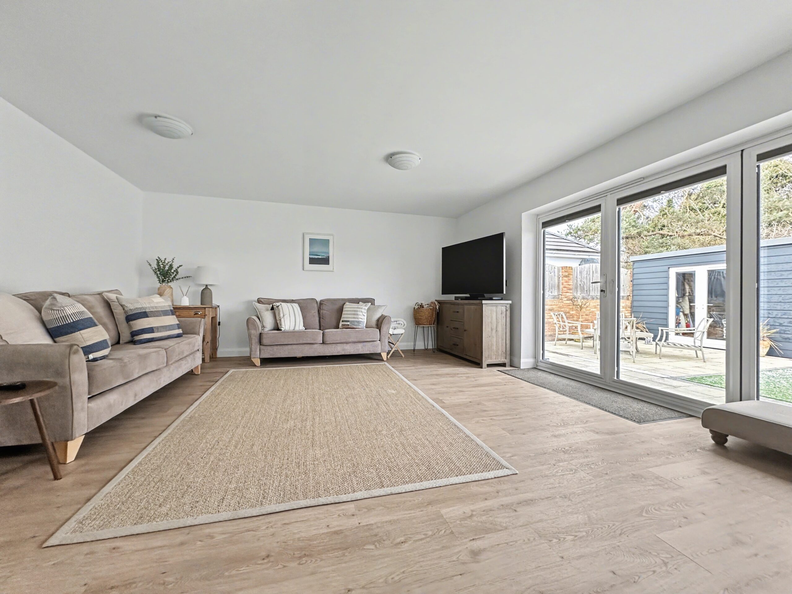 Constructed in 2021 and extensively improved by its current owners, the bungalow features a brand new, high-specification kitchen with integrated appliances and elegant finishes, complemented by modern floor coverings throughout and bespoke fitted bedroom furniture that maximises both storage and style. The generous living area is flooded with natural light, creating a welcoming space for relaxation and entertaining, while bi-fold doors open seamlessly to the rear aspect, enhancing the sense of space and connection to the outdoors. Each of the three double bedrooms provides ample room for furnishings, with the principal suite boasting a luxurious en-suite shower room and built-in wardrobes, while the additional bedrooms are ideal for family, guests, or flexible use as a study or hobby room. The main bathroom is finished to a high standard with contemporary fixtures and fittings.