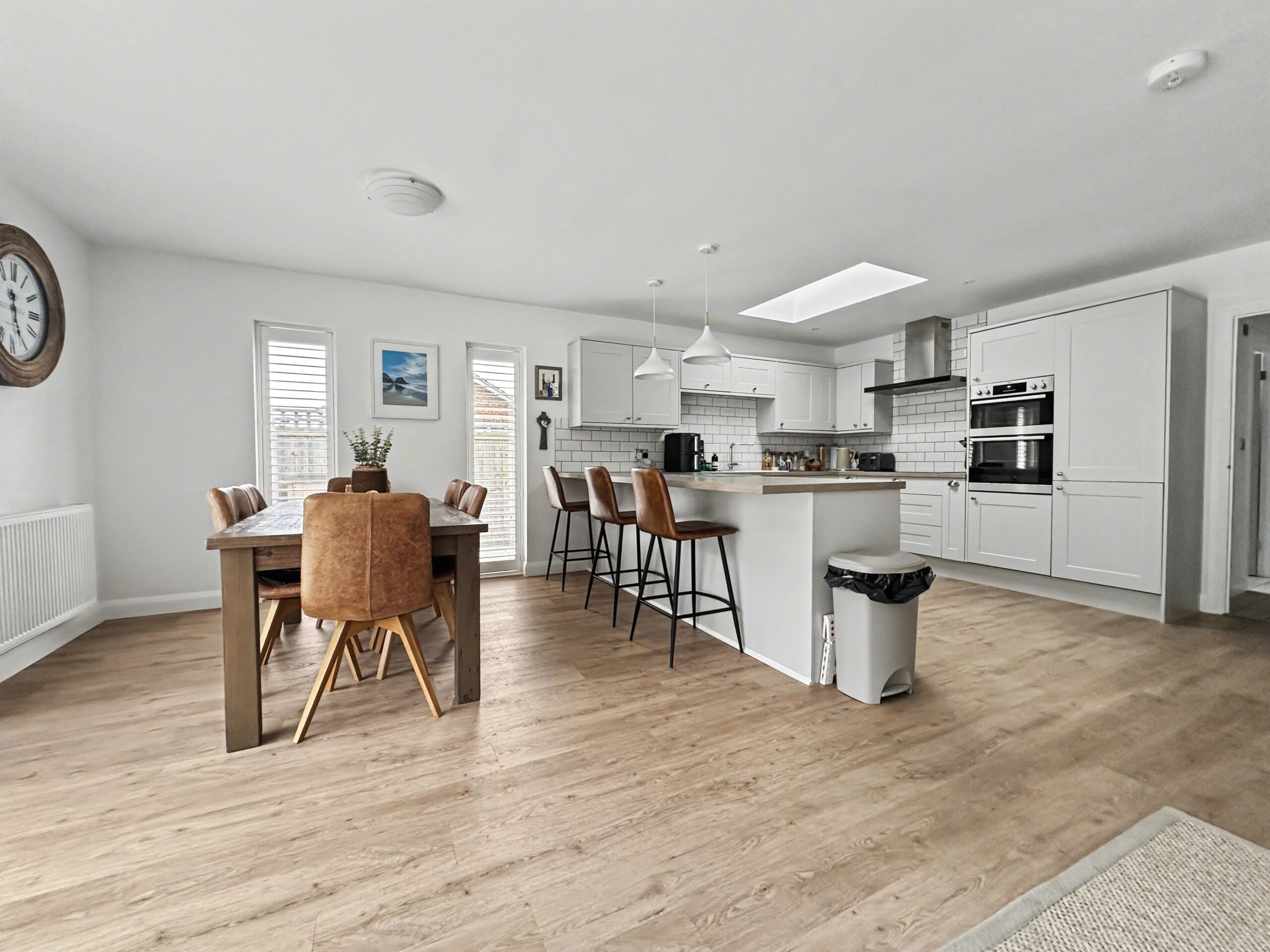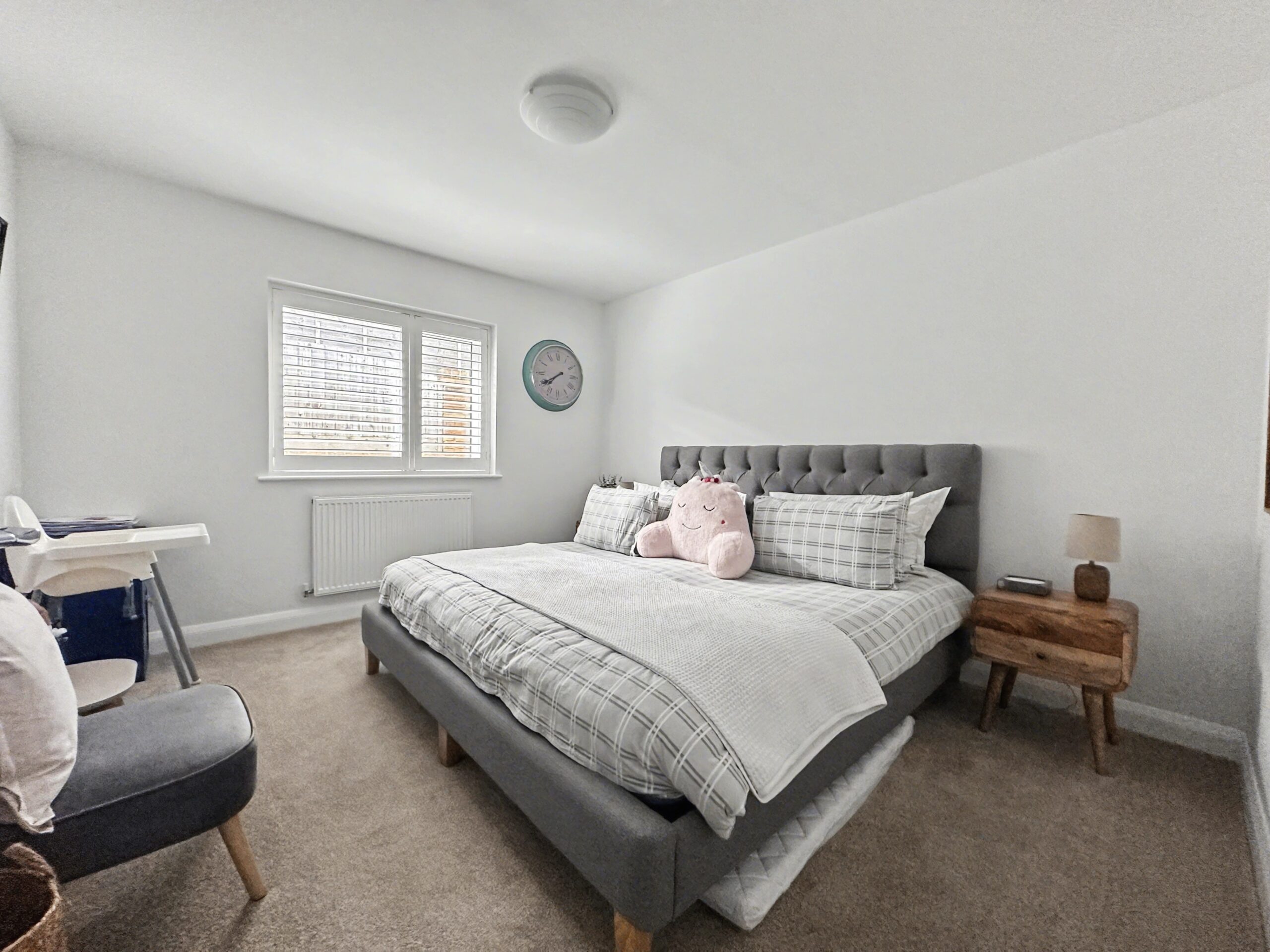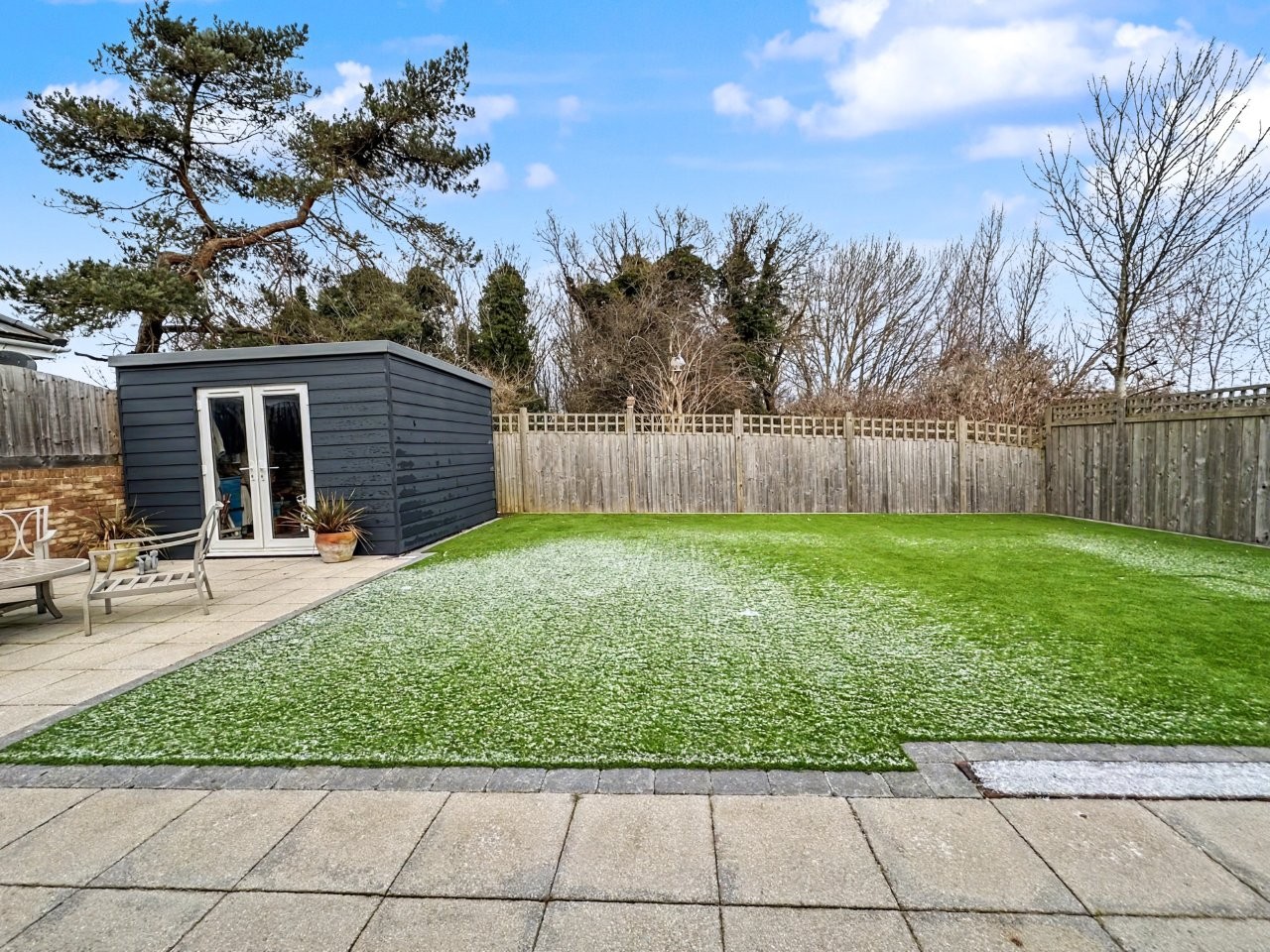 Constructed in 2021 and extensively improved by its current owners, the bungalow features a brand new, high-specification kitchen with integrated appliances and elegant finishes, complemented by modern floor coverings throughout and bespoke fitted bedroom furniture that maximises both storage and style. The generous living area is flooded with natural light, creating a welcoming space for relaxation and entertaining, while bi-fold doors open seamlessly to the rear aspect, enhancing the sense of space and connection to the outdoors. Each of the three double bedrooms provides ample room for furnishings, with the principal suite boasting a luxurious en-suite shower room and built-in wardrobes, while the additional bedrooms are ideal for family, guests, or flexible use as a study or hobby room. The main bathroom is finished to a high standard with contemporary fixtures and fittings.