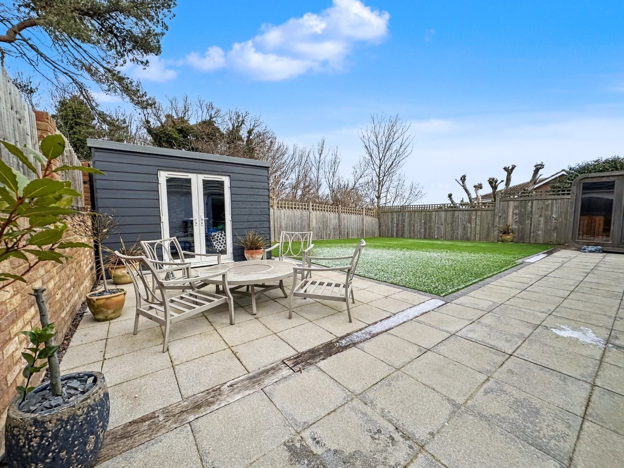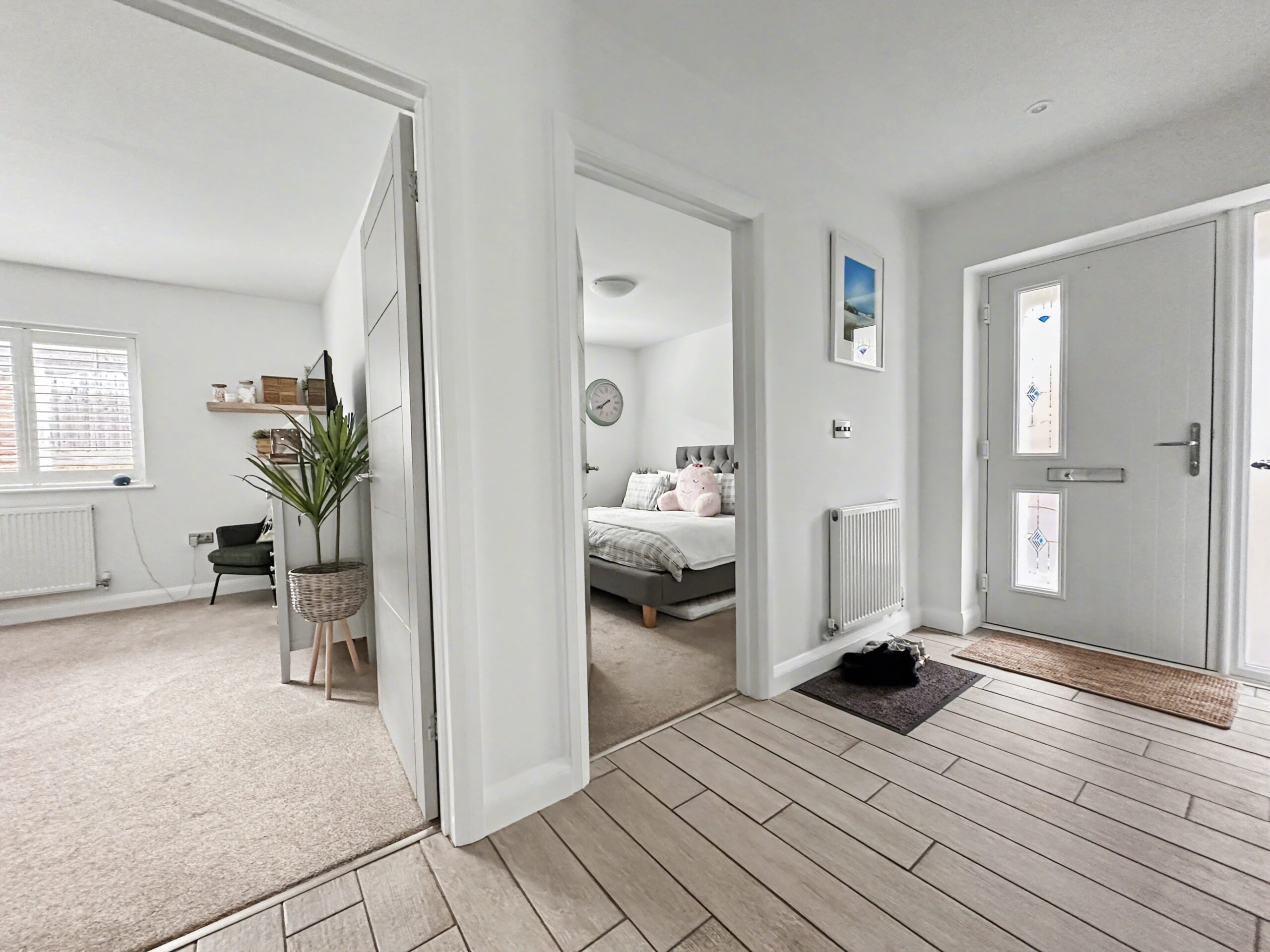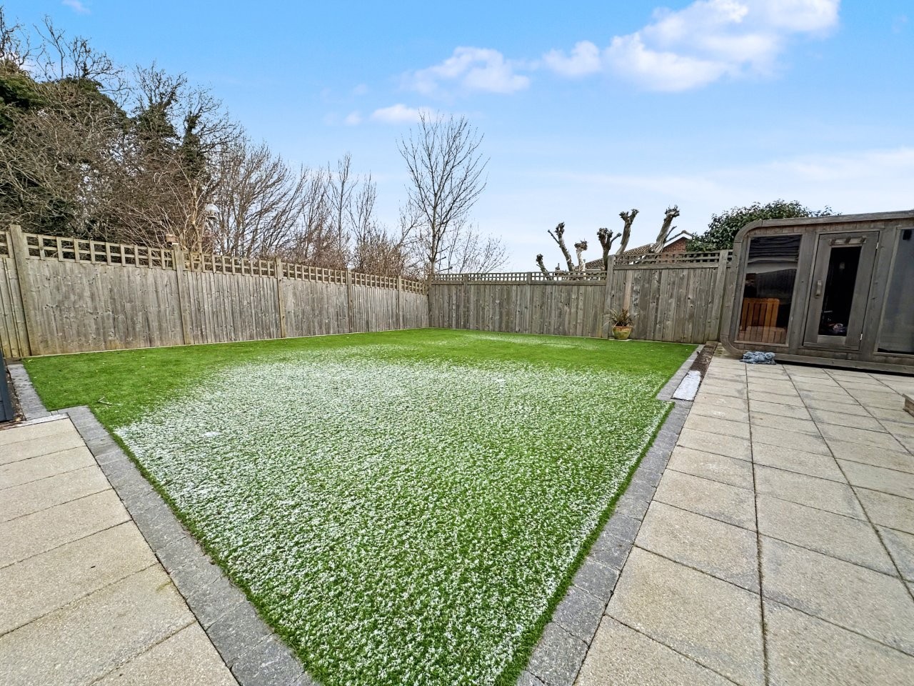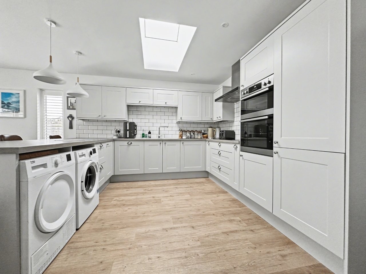Constructed in 2021 and extensively improved by its current owners, the bungalow features a brand new, high-specification kitchen with integrated appliances and elegant finishes, complemented by modern floor coverings throughout and bespoke fitted bedroom furniture that maximises both storage and style. The generous living area is flooded with natural light, creating a welcoming space for relaxation and entertaining, while bi-fold doors open seamlessly to the rear aspect, enhancing the sense of space and connection to the outdoors. Each of the three double bedrooms provides ample room for furnishings, with the principal suite boasting a luxurious en-suite shower room and built-in wardrobes, while the additional bedrooms are ideal for family, guests, or flexible use as a study or hobby room. The main bathroom is finished to a high standard with contemporary fixtures and fittings.