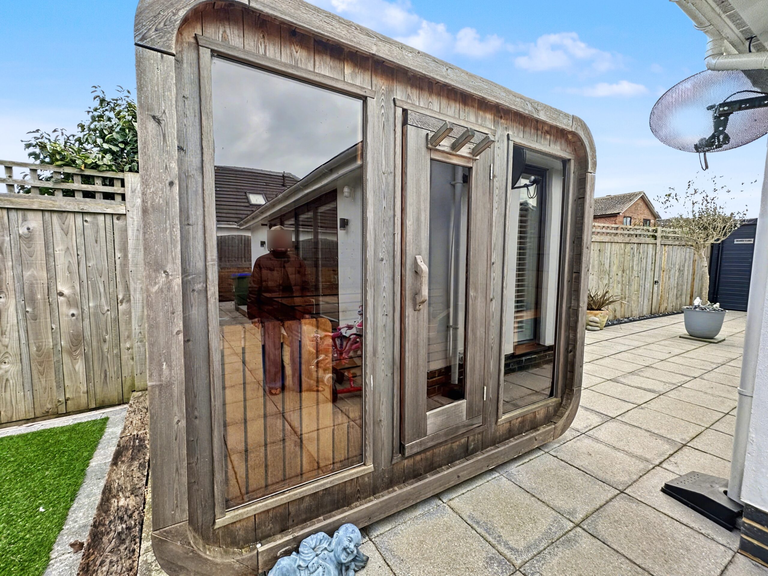Additional features include a fully boarded loft for extensive storage and a host of outside rooms, such as a fully insulated office or garden room, a 22-foot insulated workshop, and a premium sauna, all of which offer versatile options for remote working, creative pursuits, or relaxation.