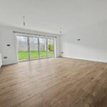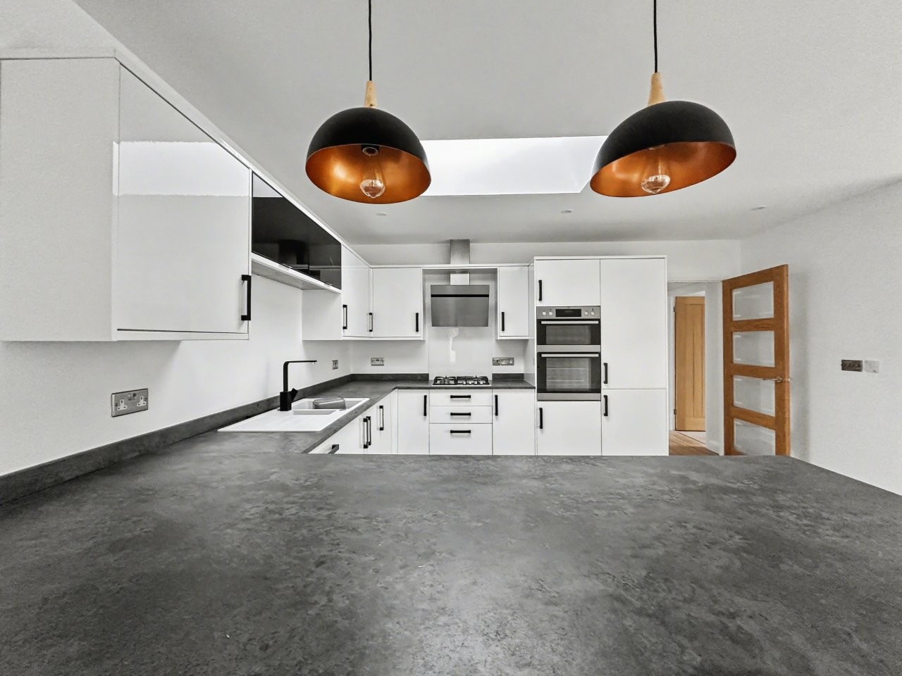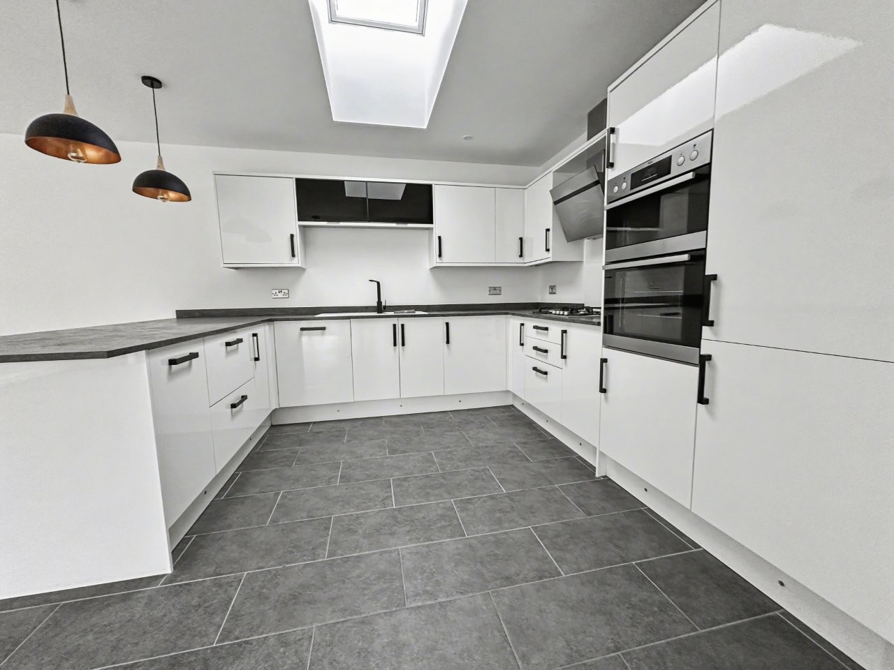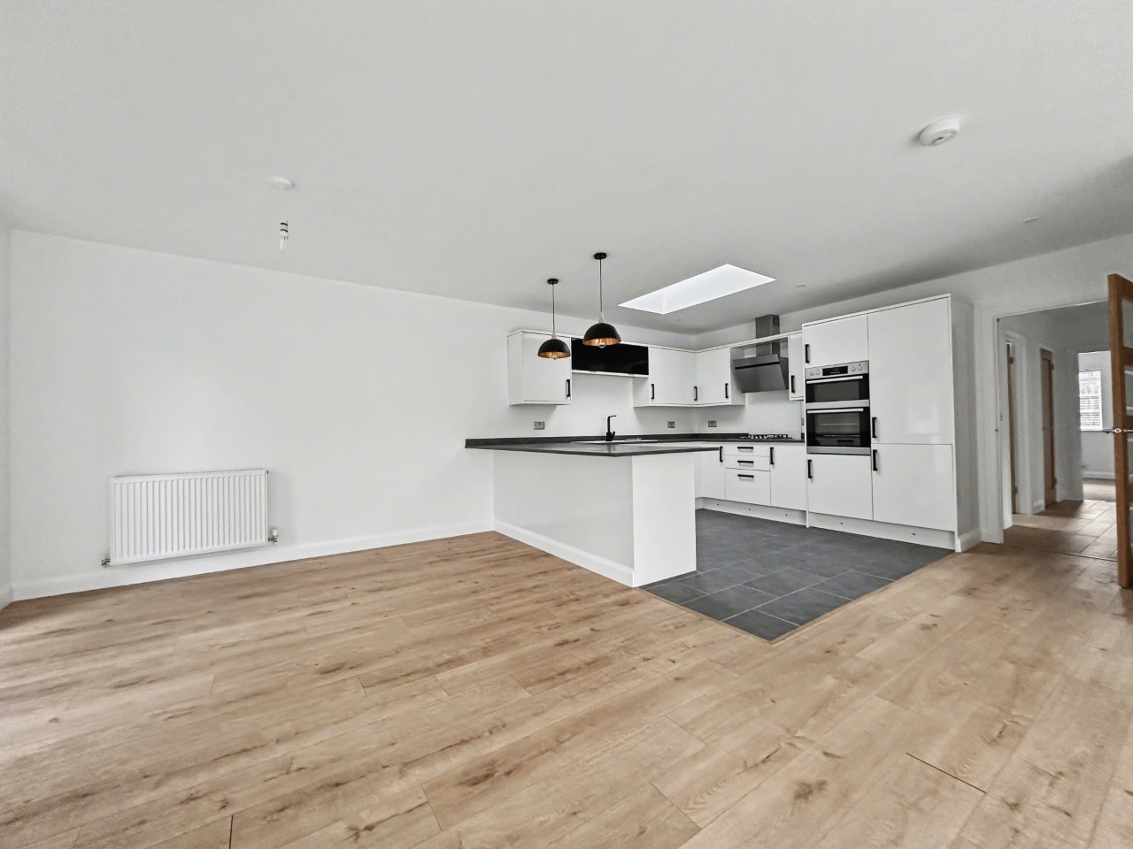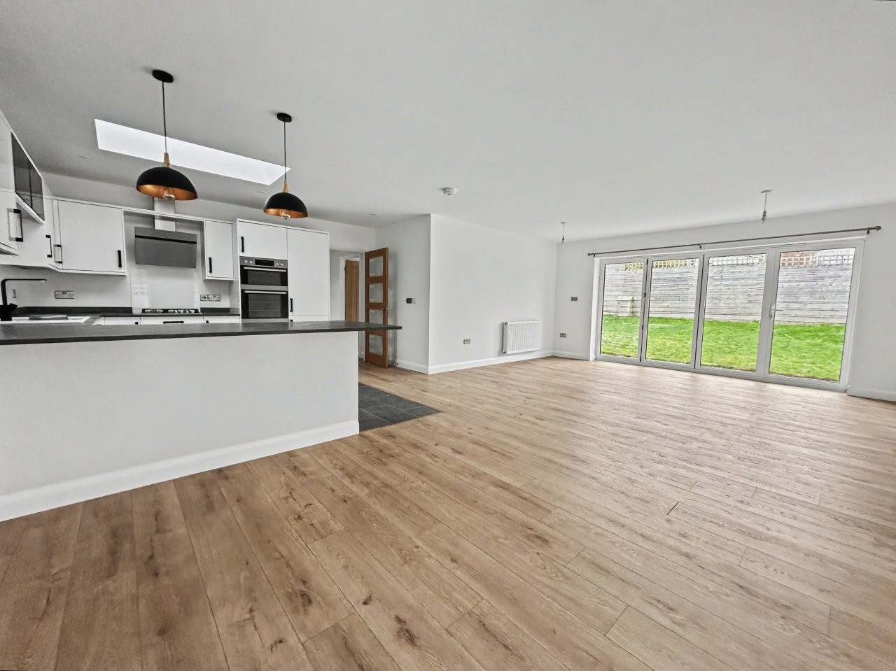 Inside, the spacious accommodation is thoughtfully designed to maximise light and functionality. The heart of the home is the impressive open plan kitchen, featuring high-quality integrated appliances, sleek cabinetry, and generous worktop space, ideal for both every-day family life and entertaining. Bi-fold doors from the Living area seamlessly connect the indoor and outdoor spaces, creating a bright and airy atmosphere throughout the living area. Each of the three double bedrooms is well-proportioned, offering ample space for furnishings and personalisation, with the principal bedroom benefitting from a stylish en-suite shower room fitted with modern fixtures and tasteful tiling. The main bathroom is equally well-appointed, featuring contemporary sanitaryware and a relaxing ambience.