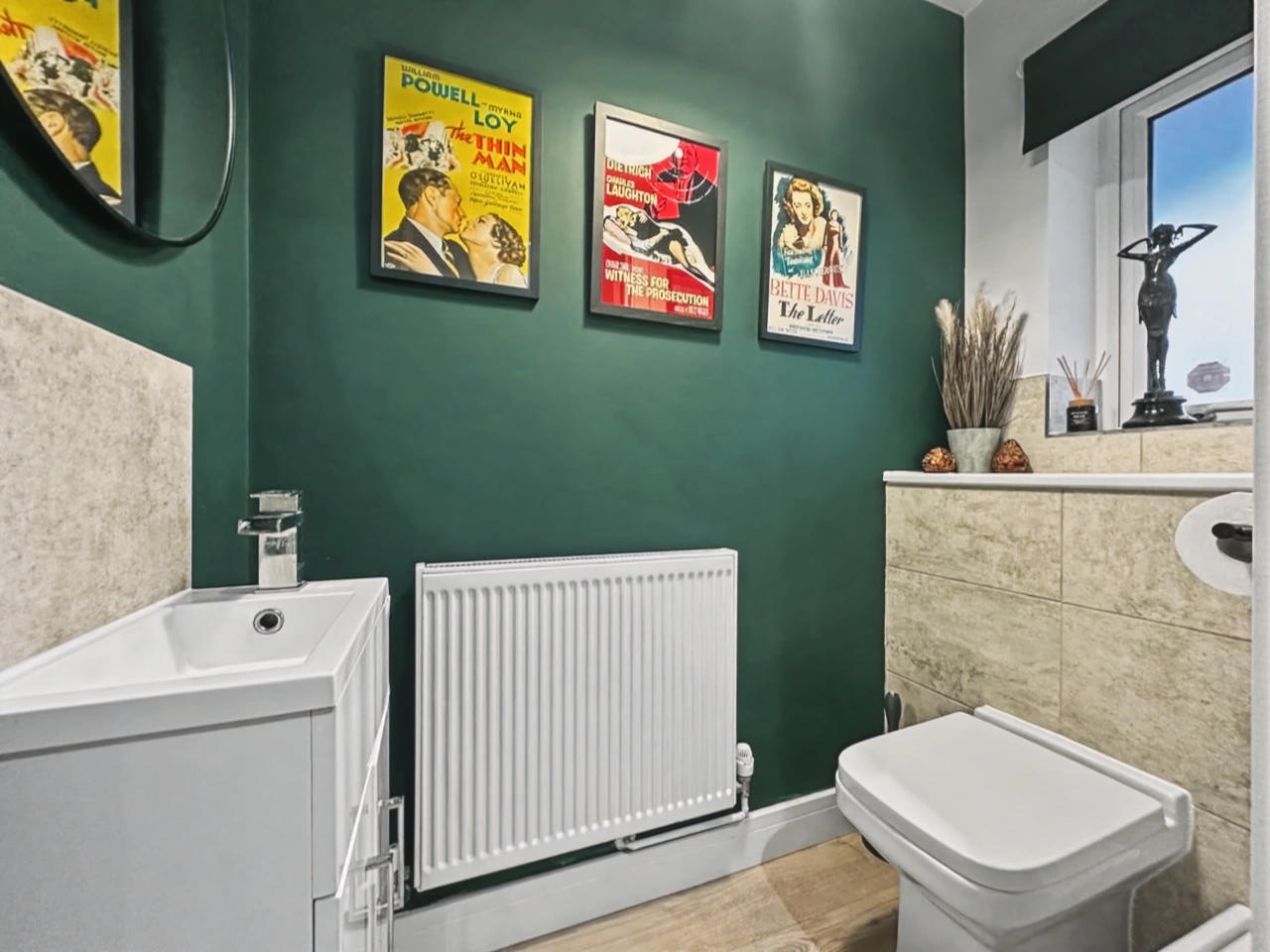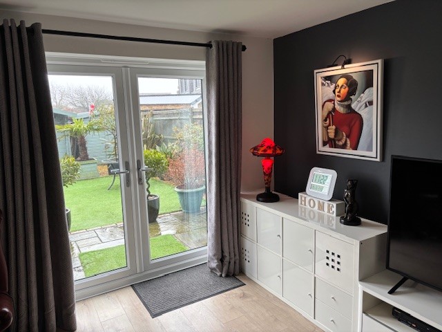 With parking for two cars at the front, this property combines modern convenience with a peaceful setting, making it an exceptional opportunity for those seeking a move-in ready home in a well-connected location. The rear garden is a particular feature of the house being south facing and has a wide patio area, astroturf lawn and established plants and shrubs. To the far end is a large cabin with a log burner and set out as a room making it a useable retreat all the year round. There is also a modern tool shed. Being south facing the garden attracts the sun all day in the summer and the owners have installed a useful awning giving some shade when needed.