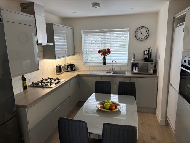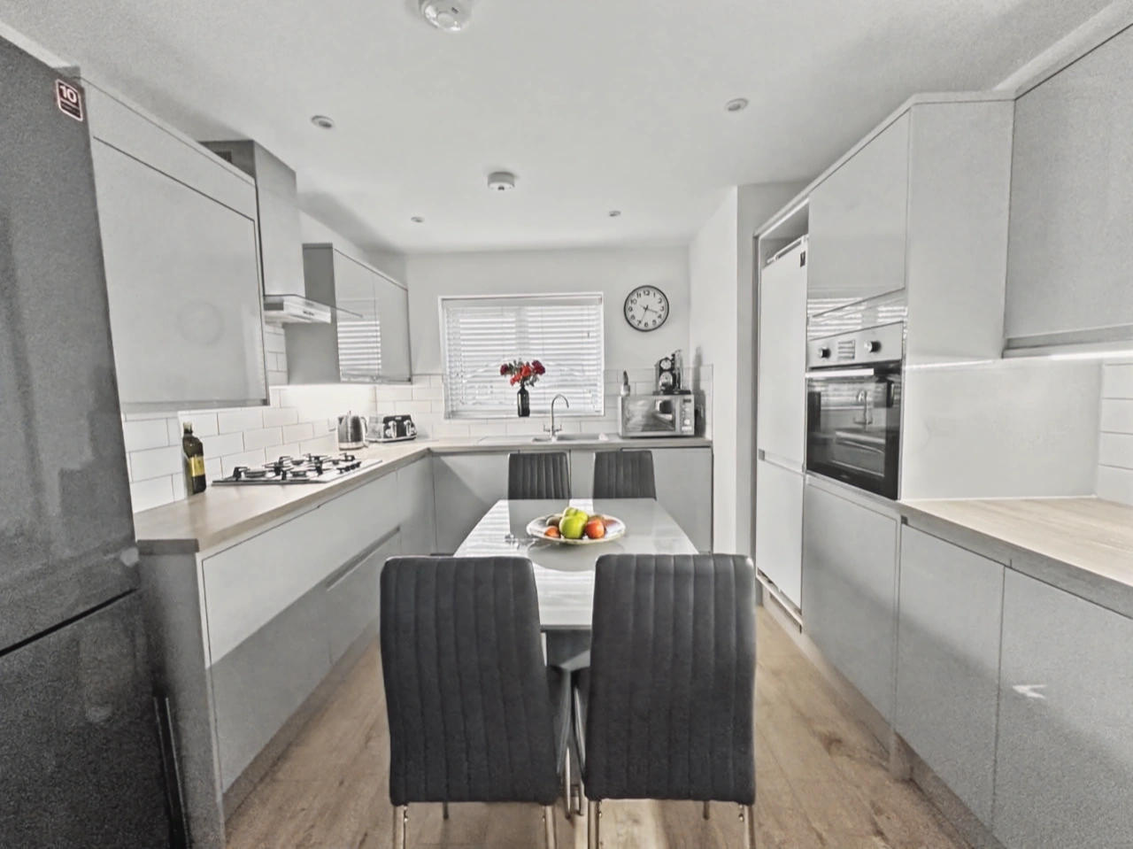 Step inside to discover a spacious and light-filled interior, with a welcoming entrance hall leading to a generous living room that benefits from a lovely southerly aspect, ensuring the space is bathed in natural light throughout the day. The living room seamlessly connects to the rear garden, providing an ideal setting for entertaining or relaxing. The modern fitted kitchen is thoughtfully designed and well equipped, featuring integrated appliances, sleek cabinetry, and ample worktop space. There is also space for a dining table. There is also a a ground floor Cloakroom/WC.