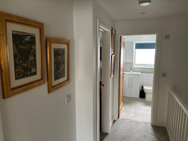 Upstairs, three well-proportioned double bedrooms offer flexible accommodation, each room enjoying a bright atmosphere and versatile layout. The principal bedroom is complemented by a stylish en-suite shower room, while the main family bathroom is finished to a high standard with contemporary fittings and fixtures. Additional features include high-quality flooring throughout, efficient double glazing, and gas central heating, ensuring comfort and energy efficiency year-round. The loft is accessed from the landing and is partially boarded