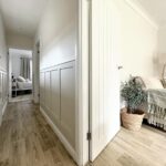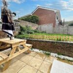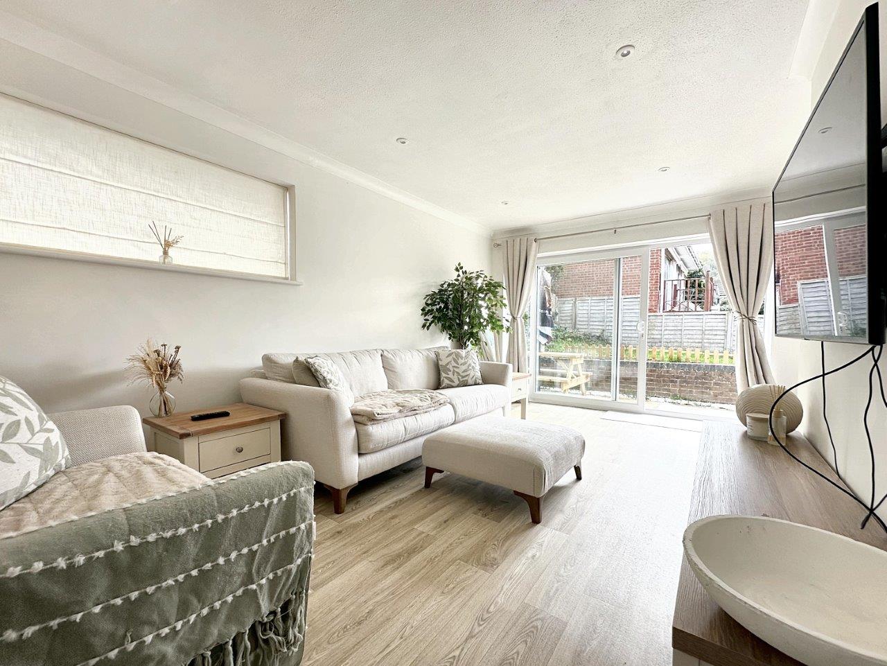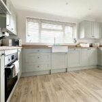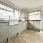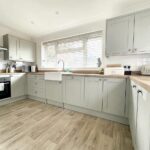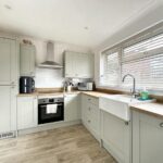 Upon entering, you are greeted by a light-filled hallway with attractive and bespoke wood panelling and neutral decoration. The lounge is a lovely bright room featuring newly installed sliding doors that seamlessly connect the indoor space with the garden, creating a perfect setting for entertaining. A particular feature of the bungalow is the superb newly fitted kitchen fitted with a modern pastel coloured shaker style kitchen with durable wood effect working surfaces. The owners have added lots of nice touches such as the butler sink. The kitchen also has a door to the rear garden.