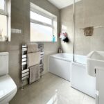 The property features two spacious double bedrooms, offering ample space for comfort and relaxation. The recently refitted bathroom exudes contemporary elegance, featuring modern fixtures and fittings that add a touch of luxury to every-day living. and consists of a ‘P’ shaped panelled bath with shower over, smart anti fog mirror cabinet, wash basin with storage cupboards below and a low flush WC. The room is finished with attractive tiling and matching tiled floor.