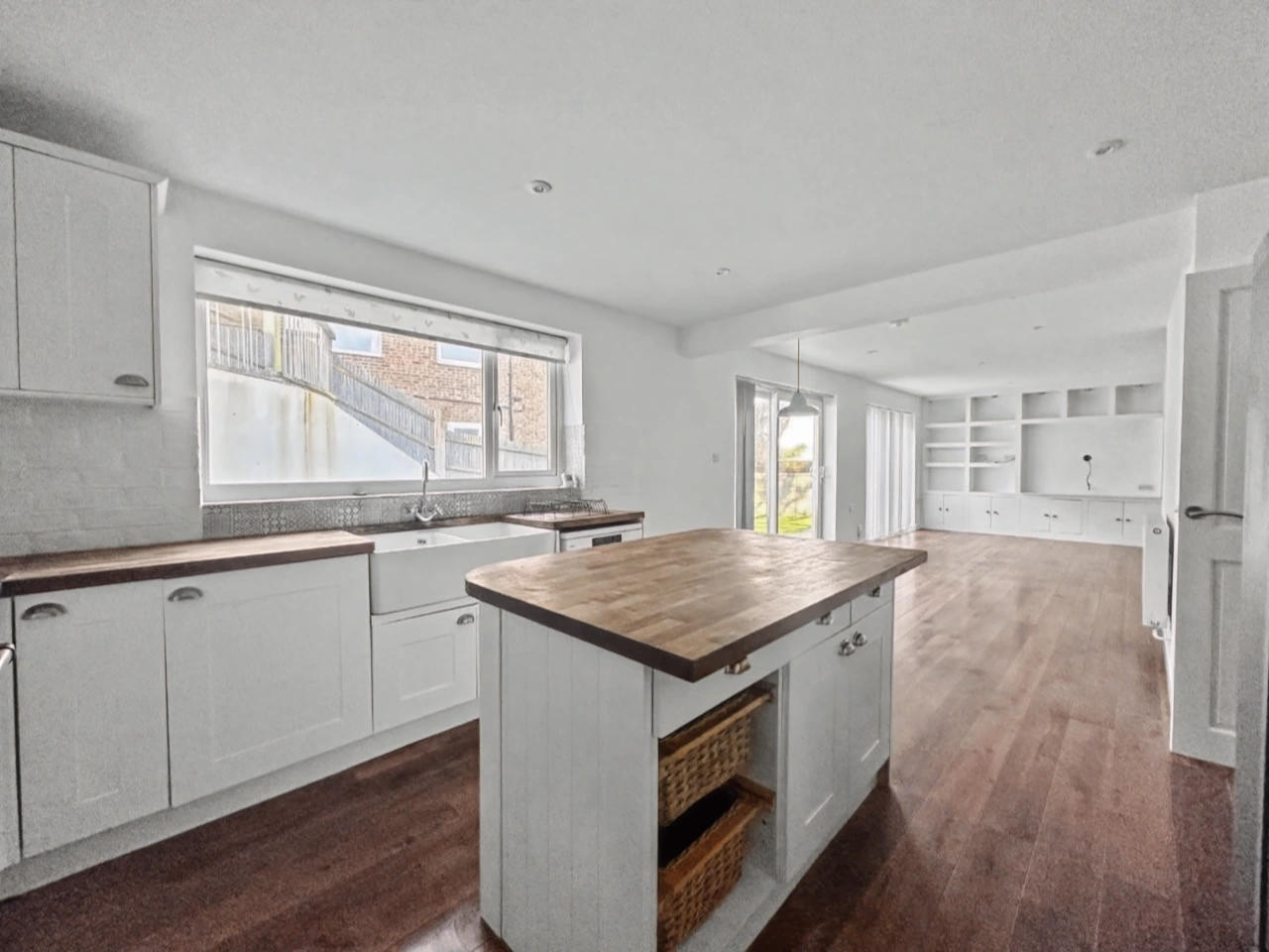 This detached four-bedroom bungalow offers contemporary living in a tranquil setting, combining spacious interiors with impressive outdoor areas. Upon entering, you are greeted by an inviting hallway, perfect for welcoming guests. The open plan living area features abundant natural light from large sliding doors, and built-in shelving for storage and display. The modern kitchen is equipped with stylish units, a central island with wooden countertops, and space for appliances, all illuminated by a large window to create a welcoming atmosphere for culinary pursuits. Bedroom 1, 2 and 3 are good sizes, all of which are doubles. There is also another bedroom to the front for the bungalow which makes a nice size single room or alternatively a home office. Off the hallway a shower room and a bathroom can be found. One of which is a ‘jack and jill’ bathroom with access onto bedroom one also. They offer a combination of a sleek walk-in shower and a bath-tub with decorative tile accents and modern fixtures whilst ensuring comfort and convenience for a busy household.